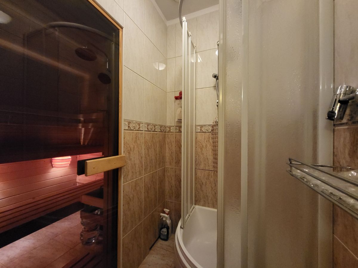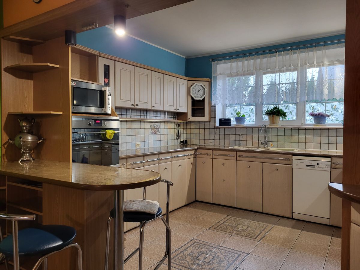Dom posiada: 3 sypialnie, salon, jadalnię, kuchnię, taras, saunę, kotłownię, pralnię oraz duży garaż na dwa samochody i miejsce na stół warsztatowy i miejsce na narzędzia.