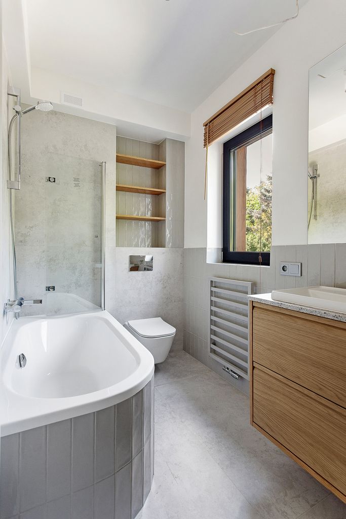 Piętro to strefa prywatna składająca się z głównej sypialni z garderobą i łazienką, oraz 3 pokoi z dostępem do drugiej łazienki. Dodatkowo na trzecim poziomie użytkowe poddasze składające się z dwóch pomieszczeń.