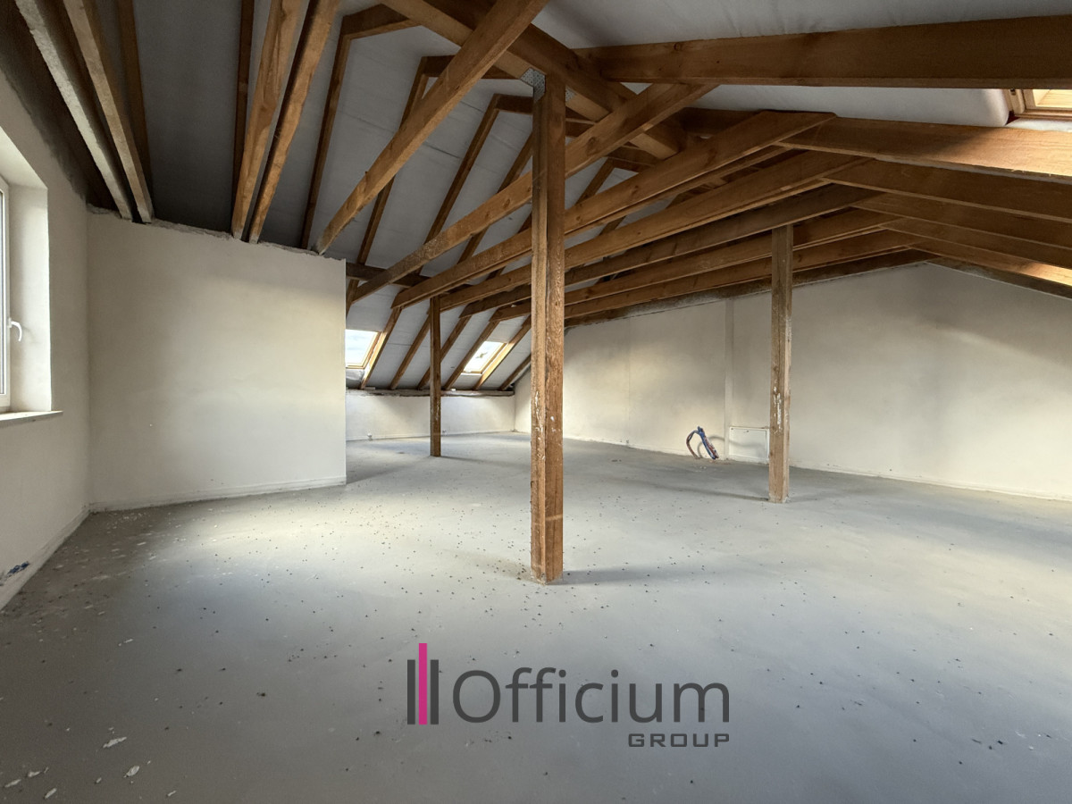 Mieszkanie o powierzchni ok. 150 m², dwupoziomowe, znajduje się na pierwszym piętrze i poddaszu.