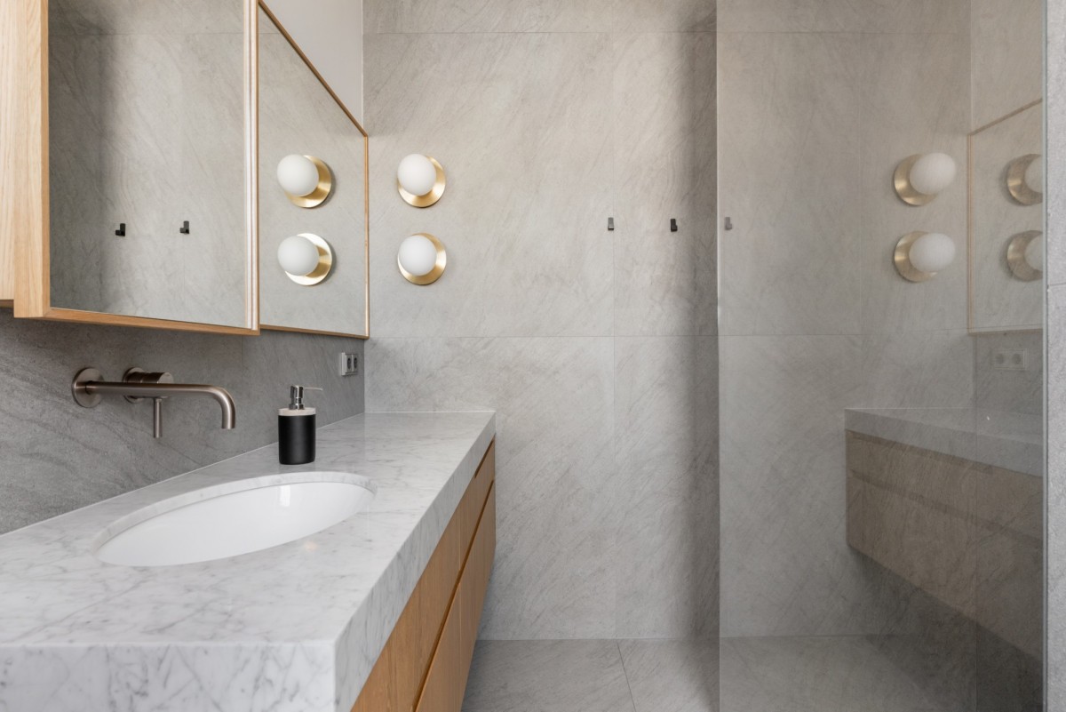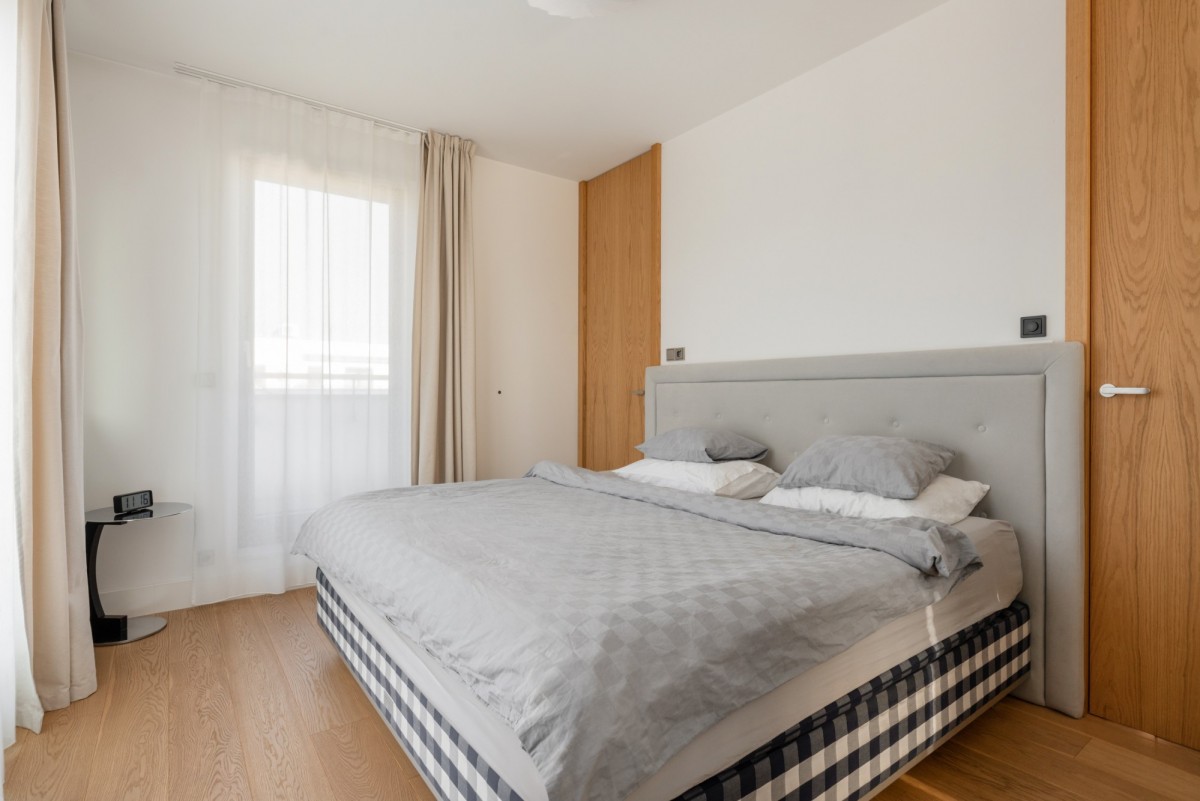 • High-quality finishes: oak flooring in living areas and bedrooms, full-height wooden doors, custom-designed built-in furniture, and natural stone in bathrooms
