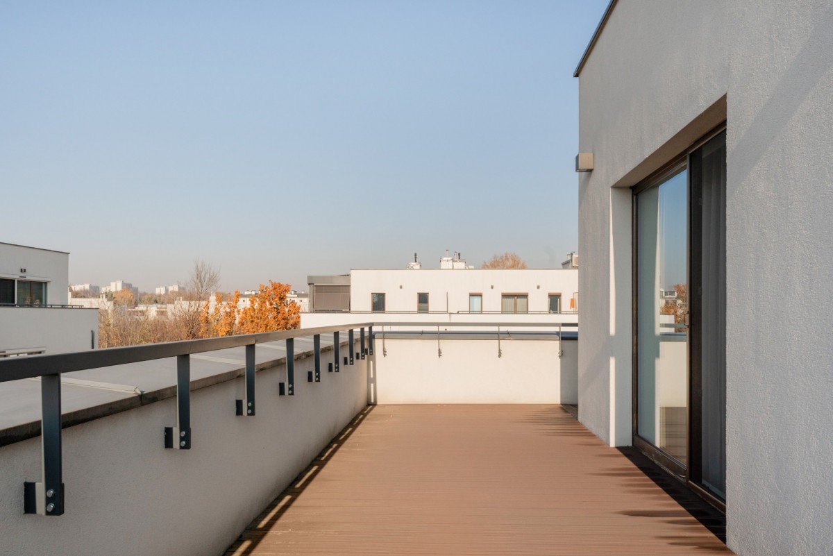Nova Królikarnia is a harmoniously designed residential estate in a quiet and peaceful area of Mokotów. The development includes a private park with a pond and a children's playground. To the south, the house is adjacent to green areas, including Enklawa Park and Jaśminowa Polana.