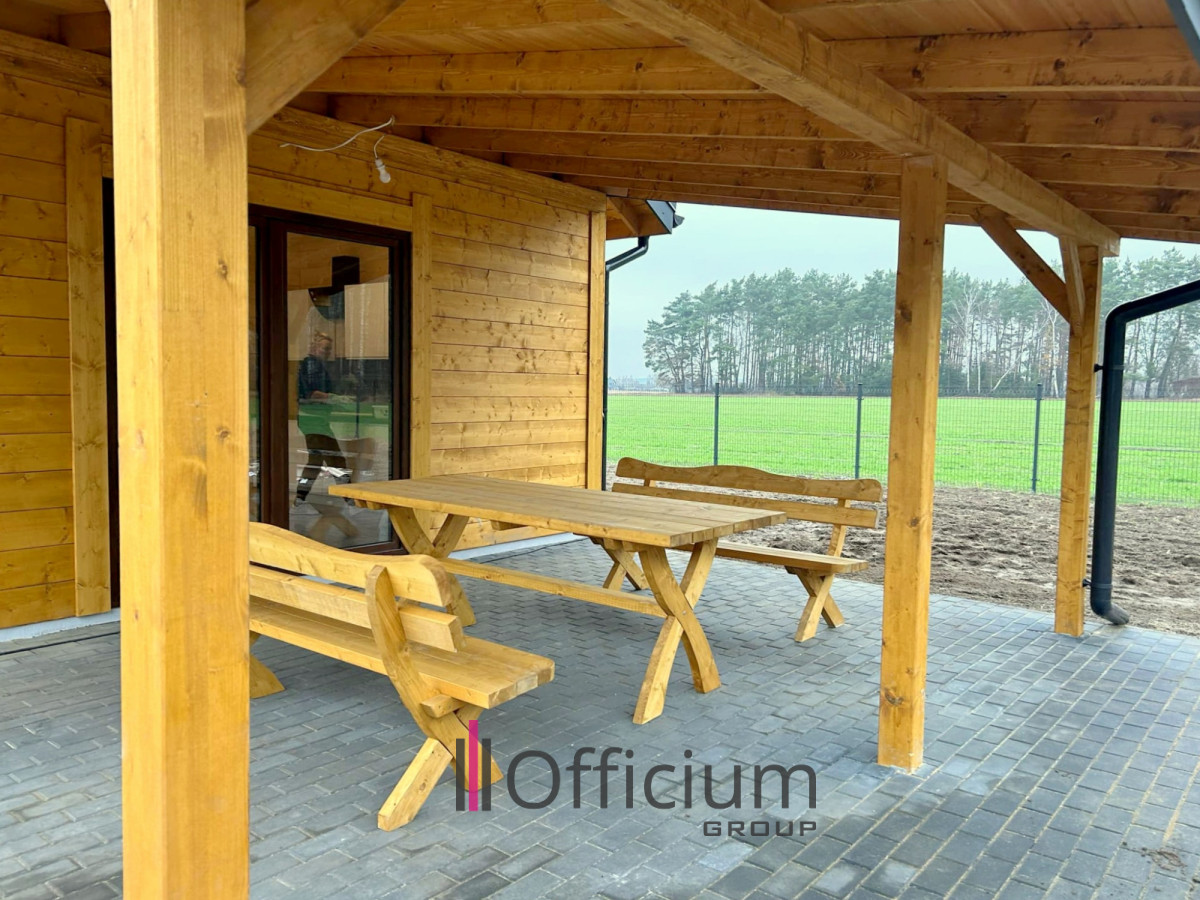 - wyjście z salonu na zadaszony taras (6×5 m) z meblami ogrodowymi - idealne miejsce na relaks.