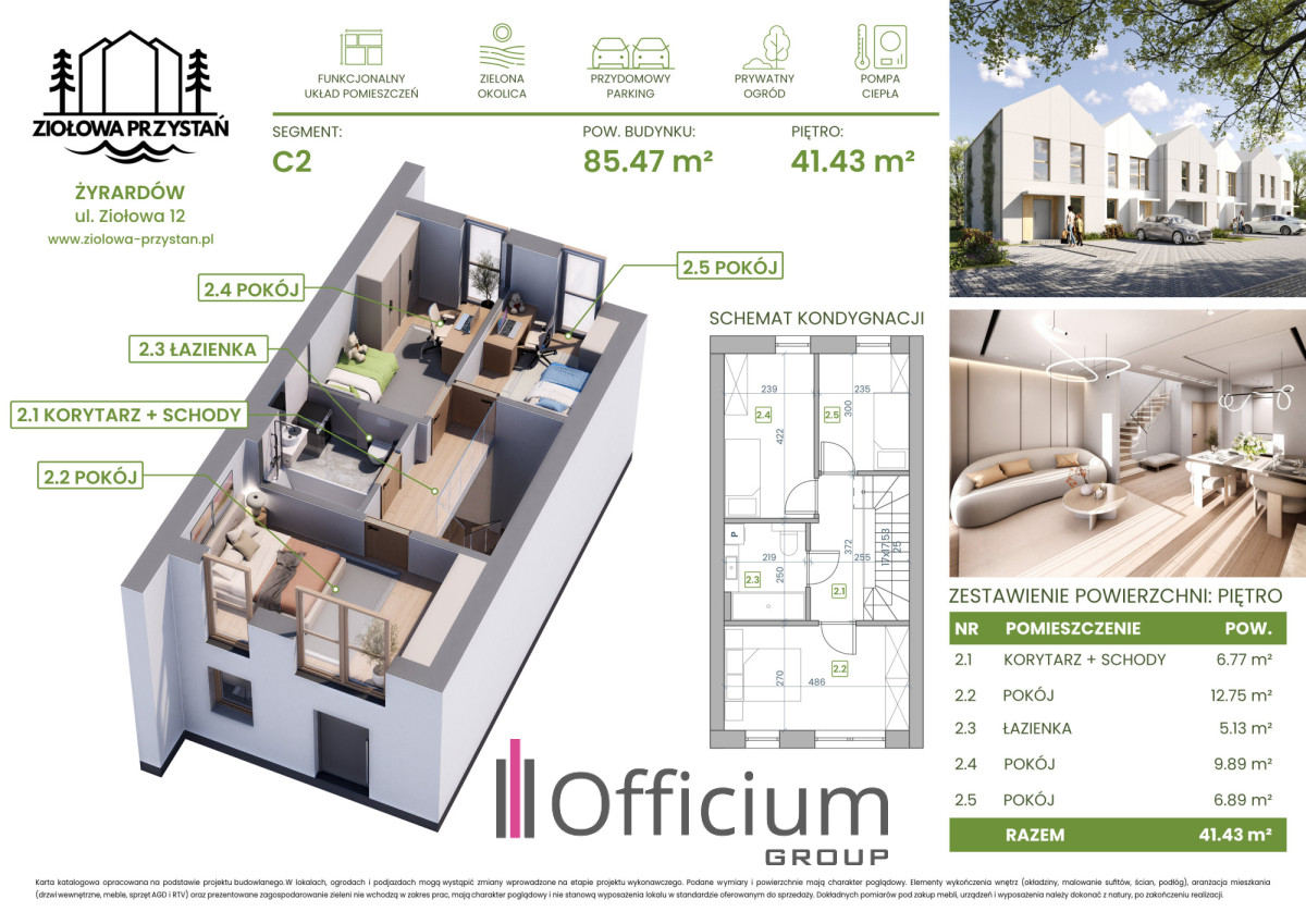 Osiedle „Ziołowa Przystań” to kameralna inwestycja złożona z sześciu segmentów w zabudowie szeregowej — położona w malowniczej części Żyrardowa, w sąsiedztwie: