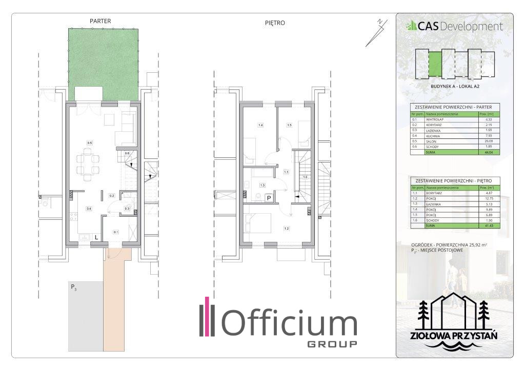 - 2 miejsca parkingowe naziemne,