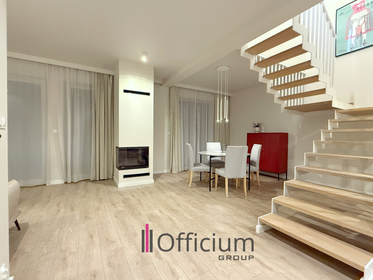 Na szczególną uwagę zasługuje klimatyczny kominek znajdujący się w salonie dzięki którem w chłodniejsze dni możemy nieco podnieść temperaturę oraz dodać miłego nastroju. Całość dopełniają idealnie komponujące się w standard nieruchomości meble i szereg dodatków.