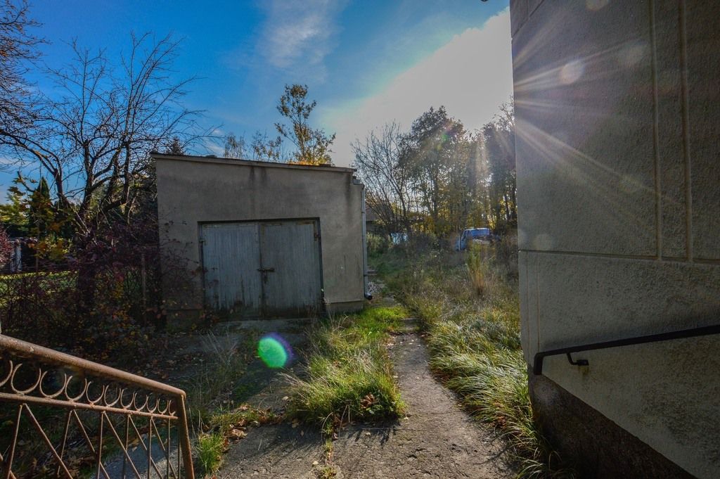 Na terenie działki stoi parterowy budynek z lat 60 wraz piwnicą (ok. 25m2) oraz strychem (ok. 100m2) który wymaga kapitalnego remontu a także jednostanowiskowy garaż z kanałem oraz komórka (jeden budynek).
