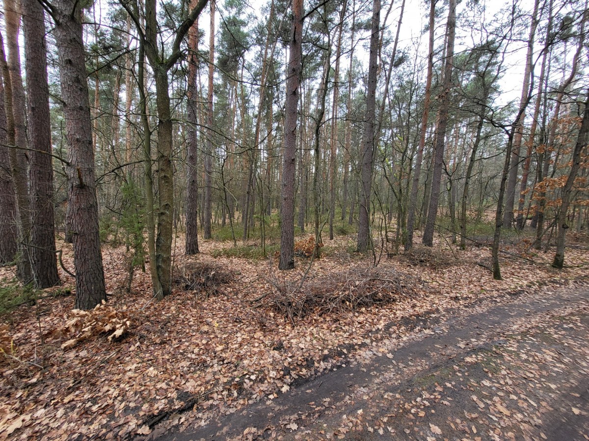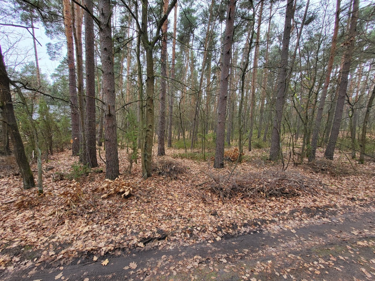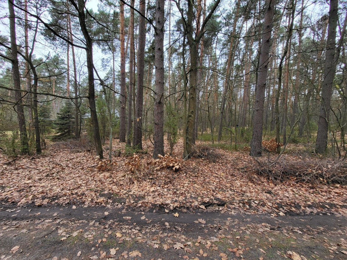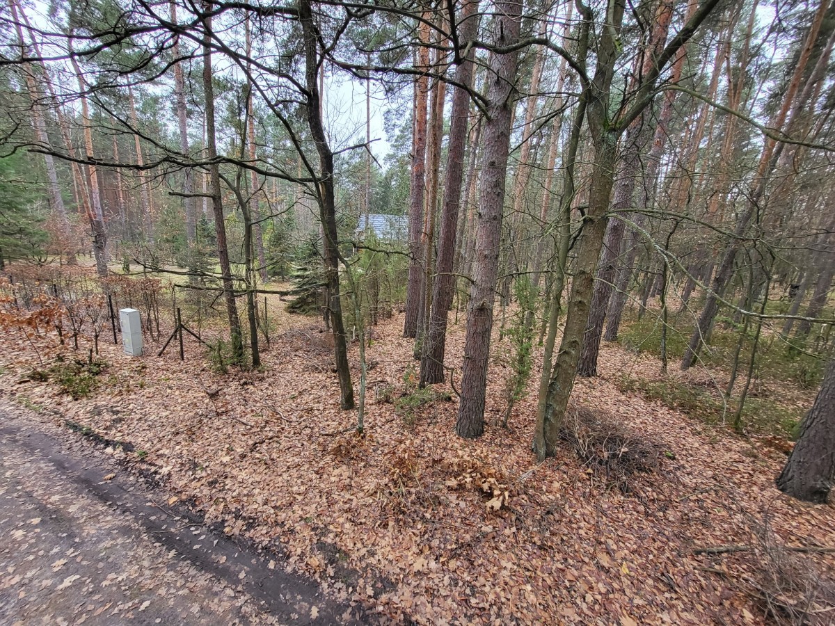 Kompleks działek rekreacyjnych - otoczenie lasu i nowych domów.