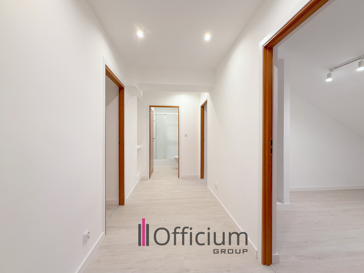 - 2 niezależne gabinety (20 m², 13 m² - powierzchnia liczona do wysokości 2 m od skosów),
