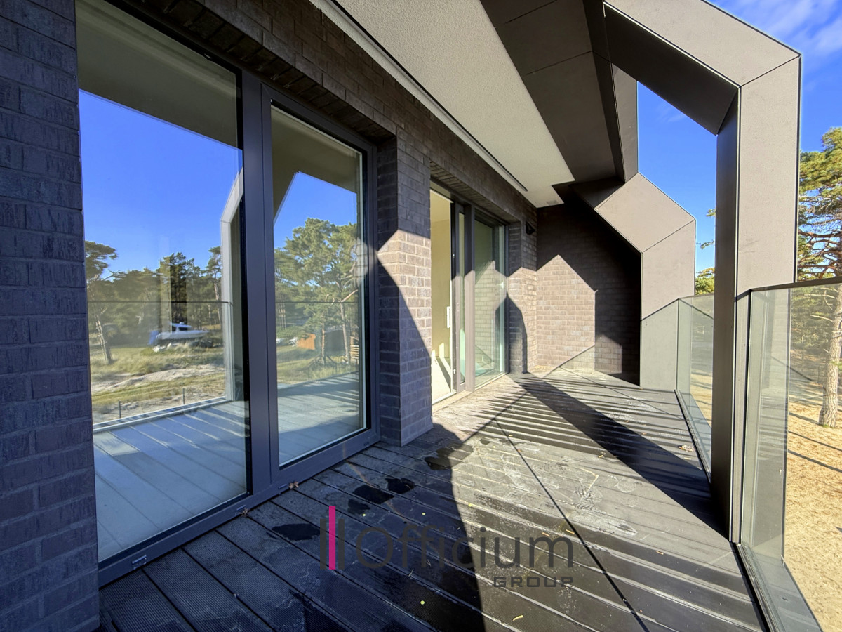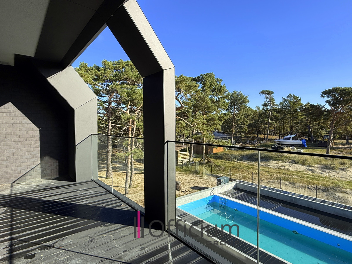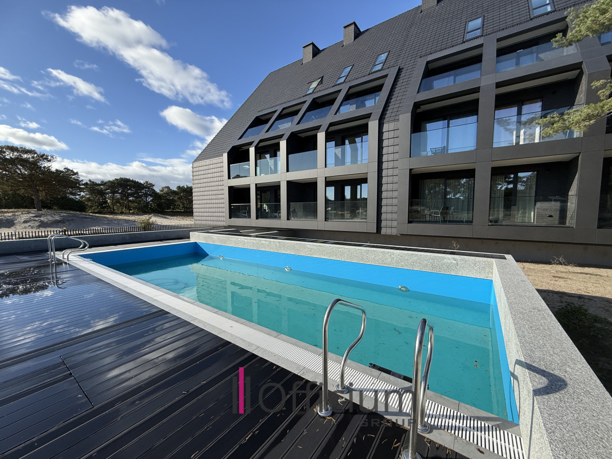 - Loggia (zadaszony balkon) z widokiem na basen i wydmy,