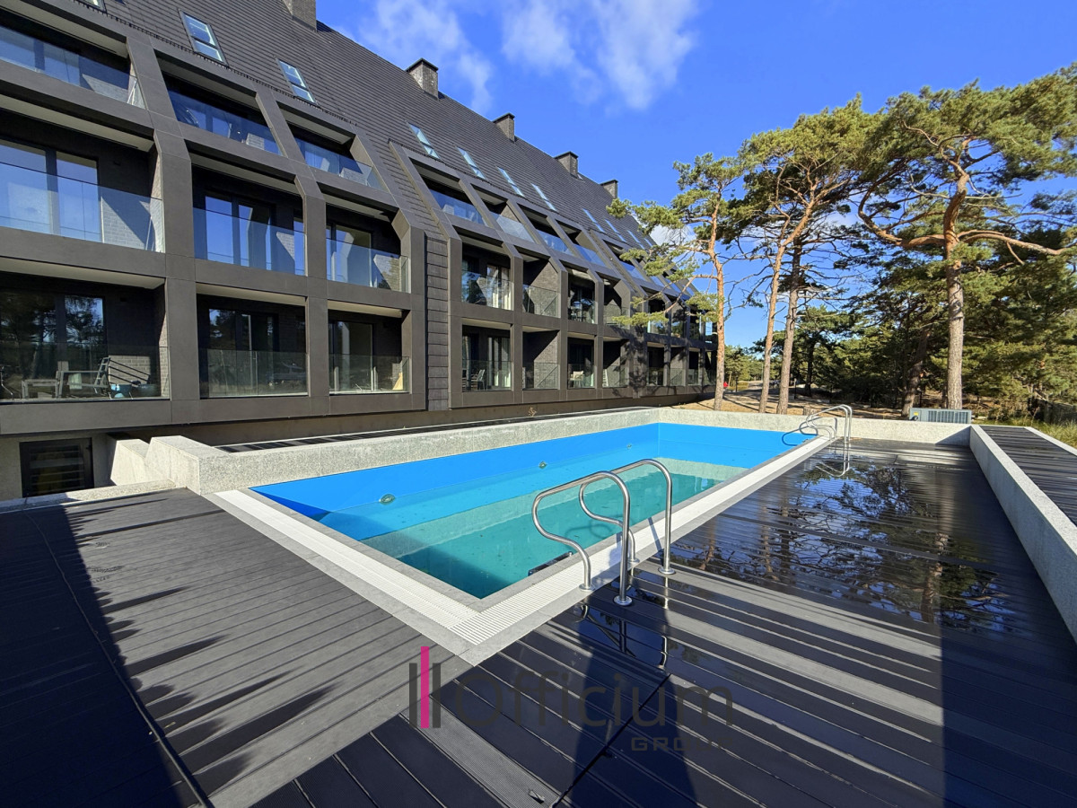- Loggia (zadaszony balkon) z widokiem na basen i wydmy,