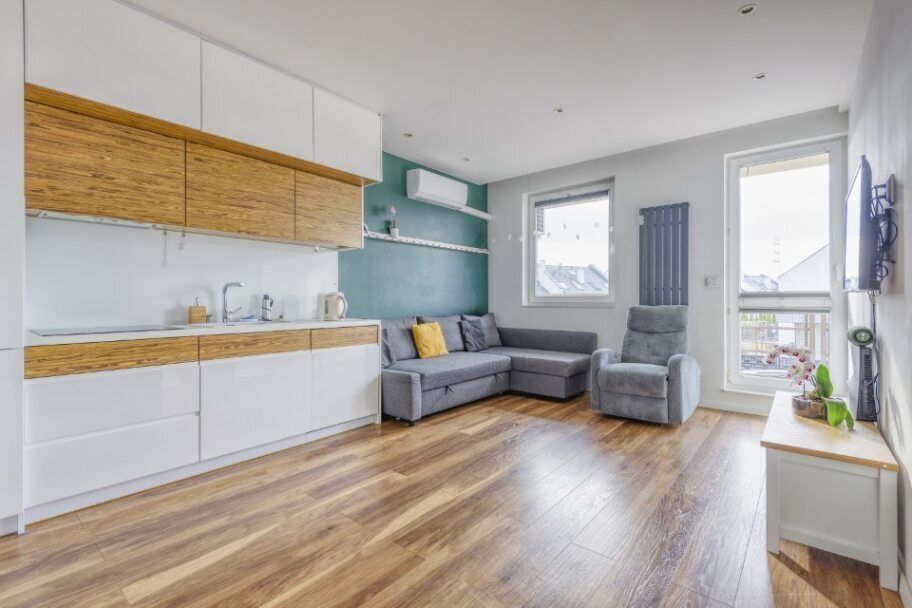 W mieszkaniu została również zamontowana klimatyzacja w 2024 r, co znacząco podnosi komfort w ciepłe dni.