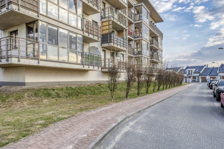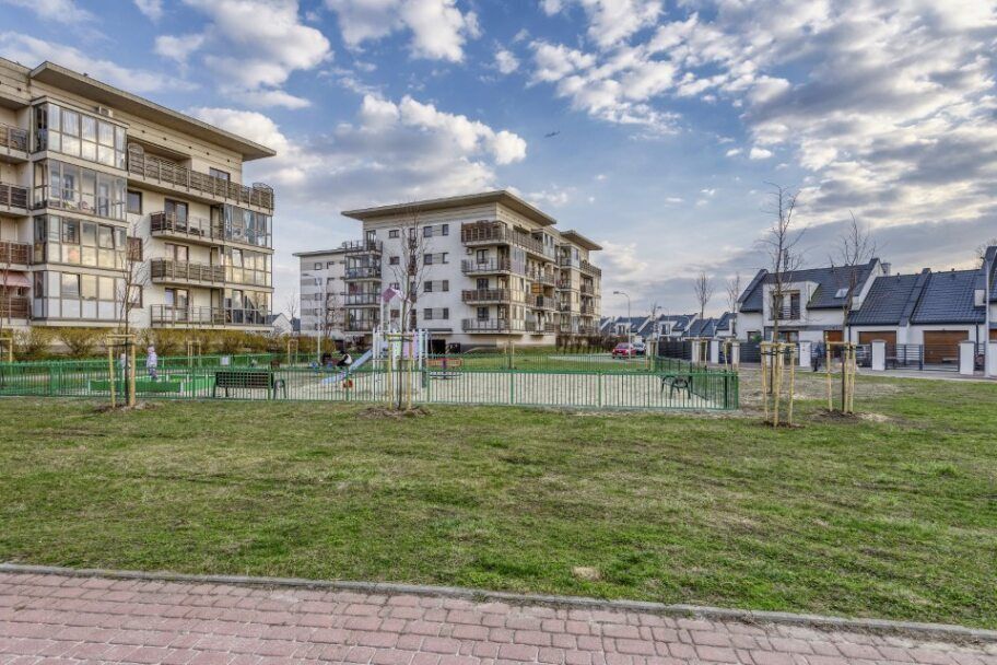 Mieszkanie o powierzchni ok 55 m², położone na wysokim parterze w budynku z windą, na zamkniętym i monitorowanym osiedlu w Kręczkach (gmina Ożarów Mazowiecki).