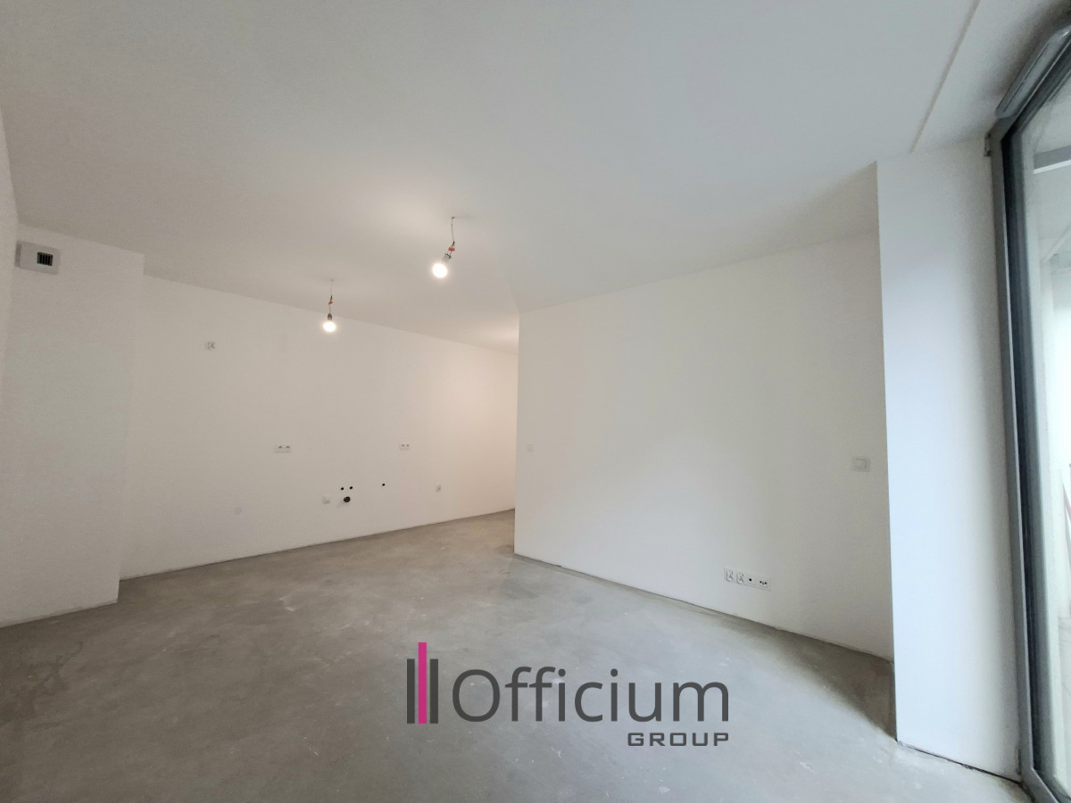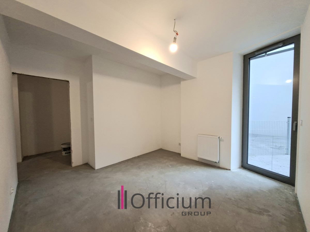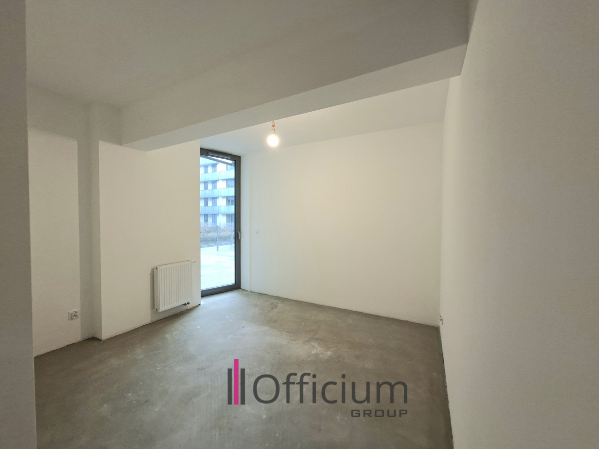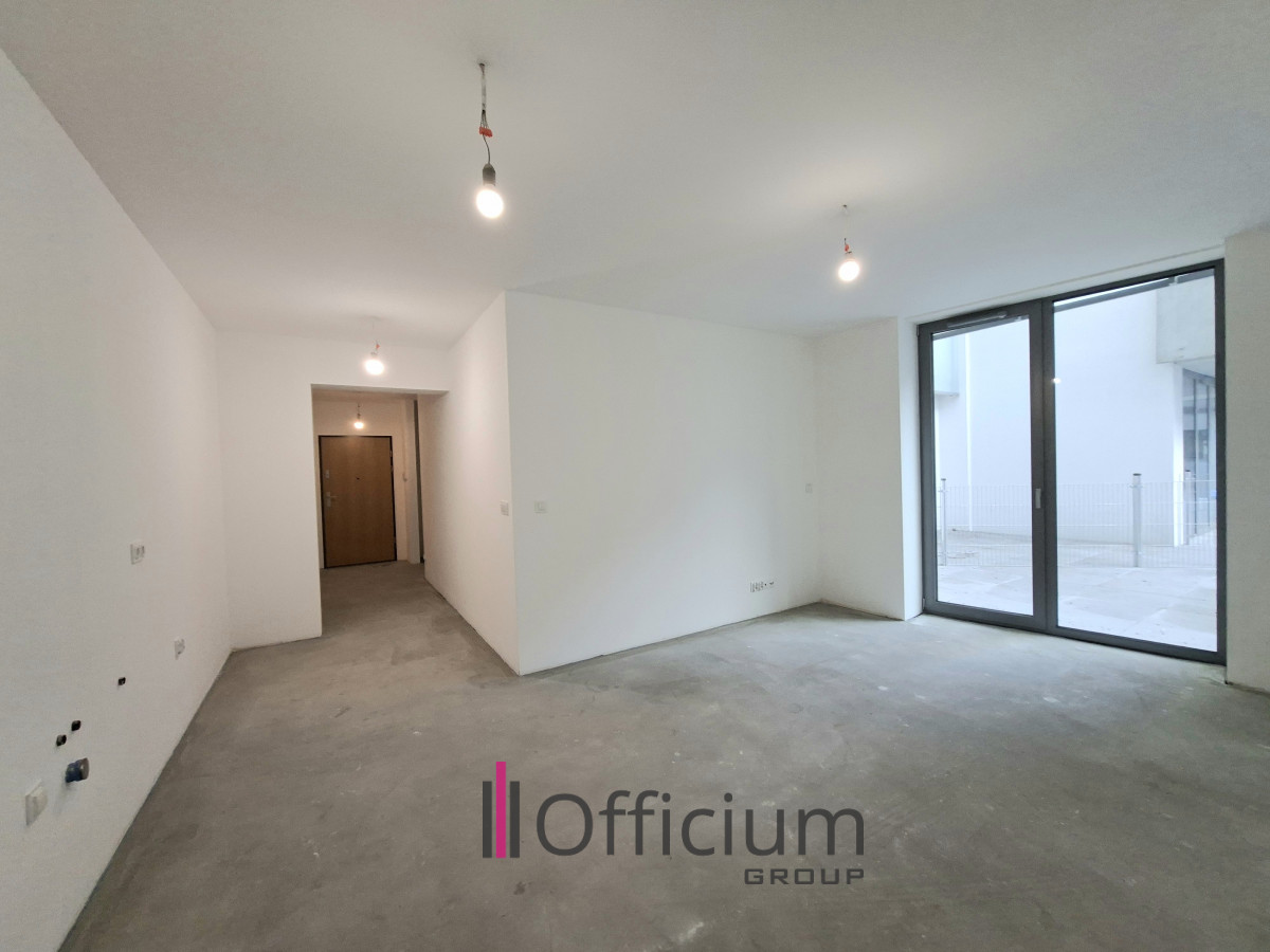 Mieszkanie składa się z salonu z aneksem kuchennym, sypialni, przedpokoju z miejscem na szafę w zabudowie, łazienki i tarasu. Dodatkowym atutem jest duży taras z widokiem na patio i zieleń, idealny do wypoczynku na świeżym powietrzu.