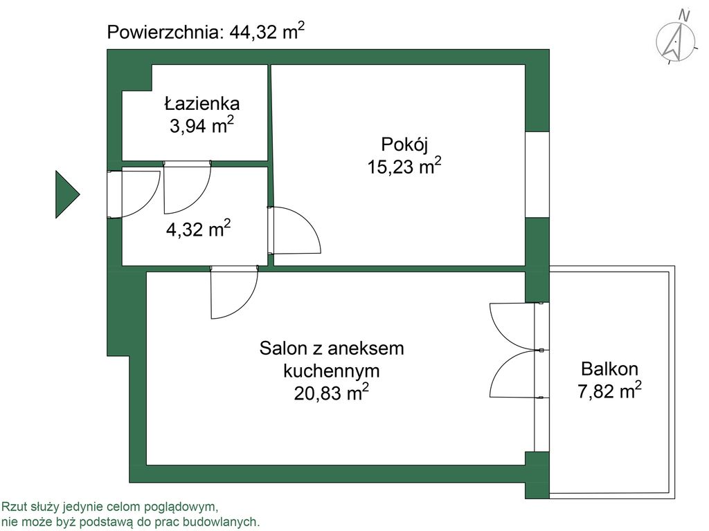 - salon z aneksem kuchennym ( 20,83m2) wyjściem na balkon ( 7,82 m2)