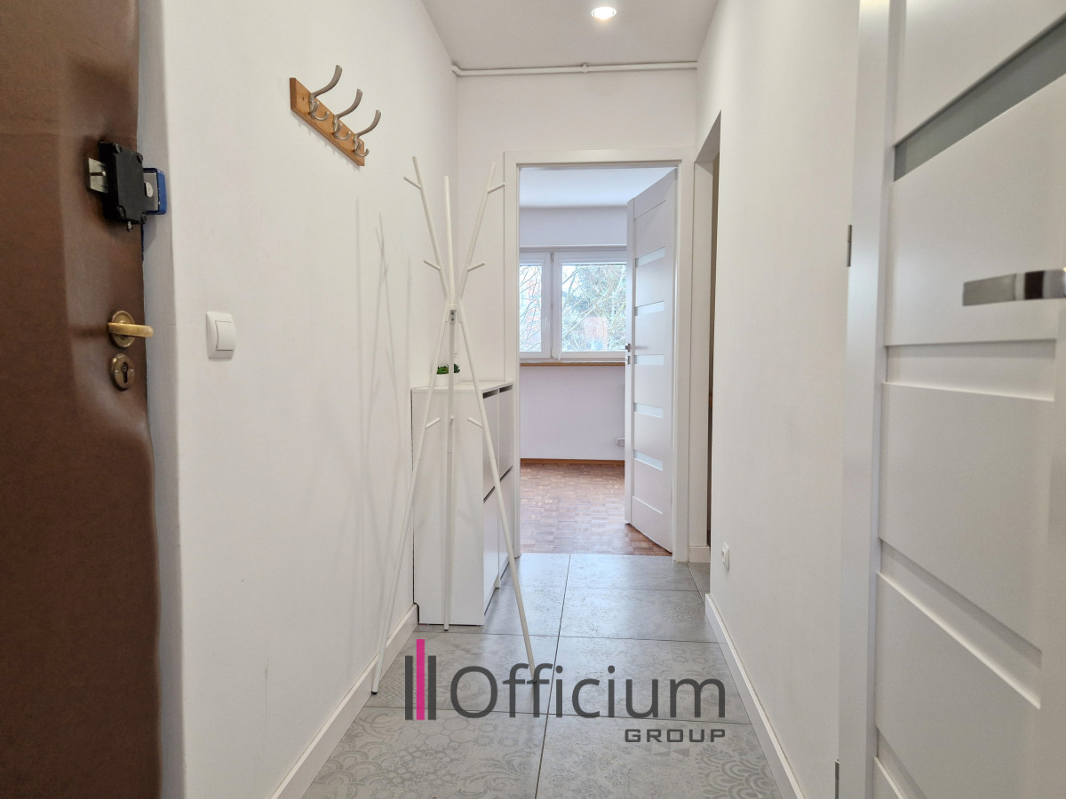 Lokal składa się z oddzielnego, przestronnego salonu, dwóch ustawnych sypialni, oddzielnej kuchni, łazienki oraz funkcjonalnego przedpokoju. Jedna z sypialni doskonale sprawdzi się jako główna sypialnia, natomiast druga może pełnić funkcję pokoju dziecięcego, gabinetu lub dodatkowego pokoju do pracy. Z salonu prowadzi wyjście na balkon, z którego rozpościera się widok na zieloną okolicę.
