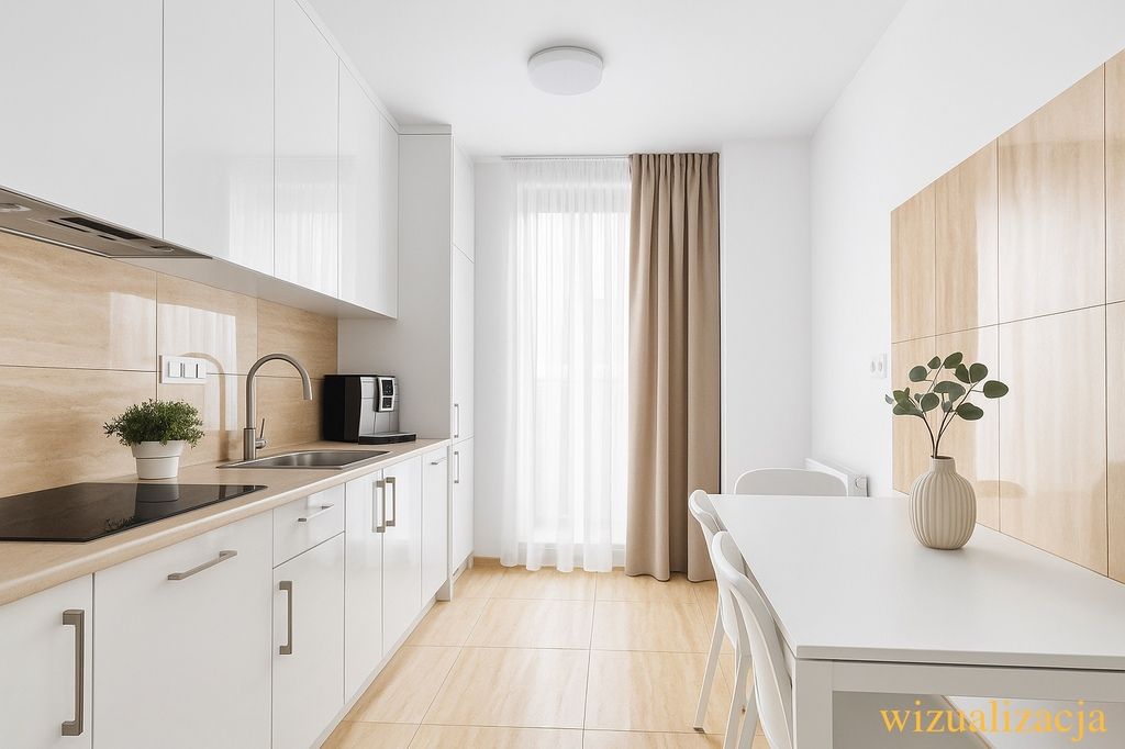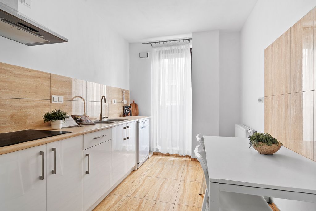 - Osobna kuchnia z balkonem francuskim - wymarzone miejsce na kawę o świcie i gotowanie z rozmachem.