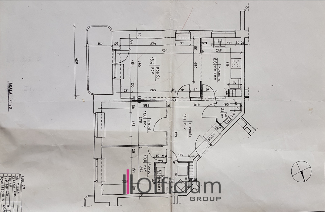 Na podłogach panele (w pokojach i przedpokoju) oraz terakota (łazienka, wc, kuchnia). Wysokość pomieszczeń wynosi 270 cm, co zwiększa poczucie przestrzeni. Mieszkanie do odświeżenia lub częściowego remontu.