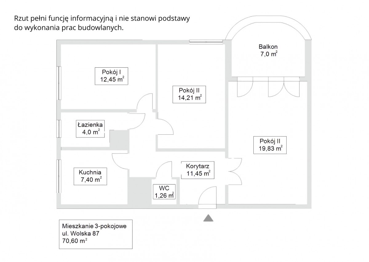 Zamieszczony w ogłoszeniu rzut jest poglądowy i nie jest podstawą do wykonania prac budowlanych.