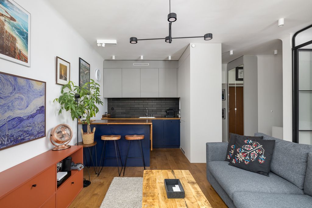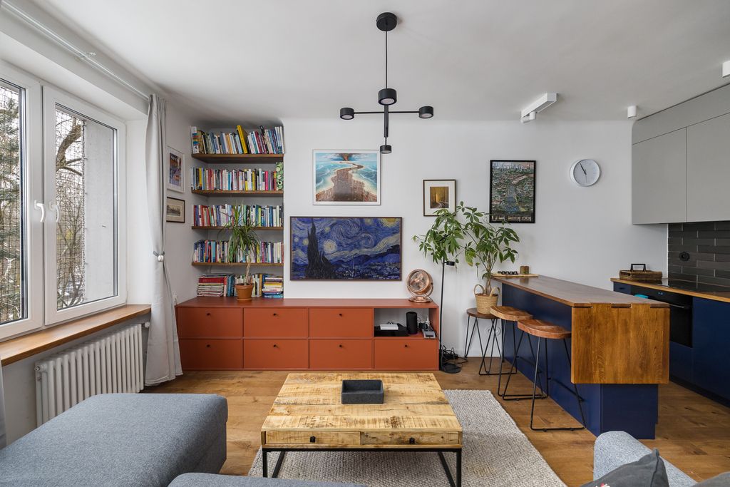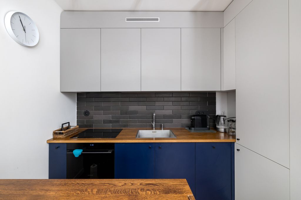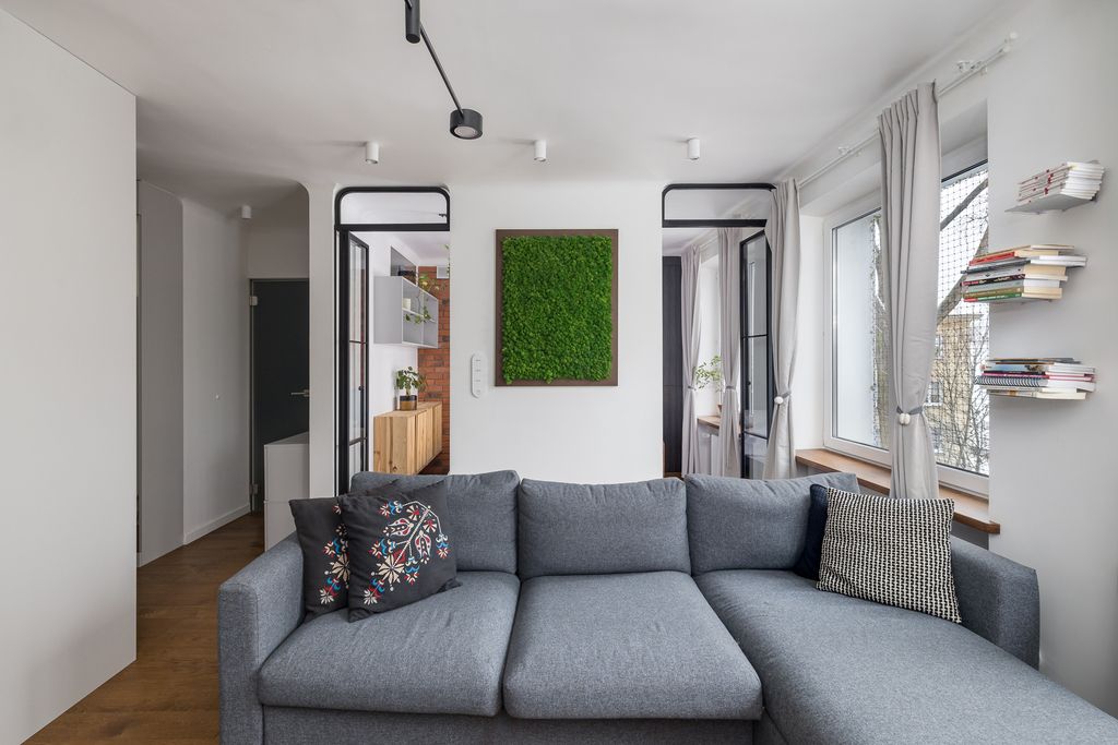 Mieszkanie wykończone z wysokiej jakości materiałów – dębowa podłoga, parapety i blaty, cegła dekoracyjna w sypialni, meble na wymiar oraz inteligentne oświetlenie Philips Hue. Wymienione wszystkie instalacje, nowe drzwi wejściowe z zamkiem TEDE (Dierre).