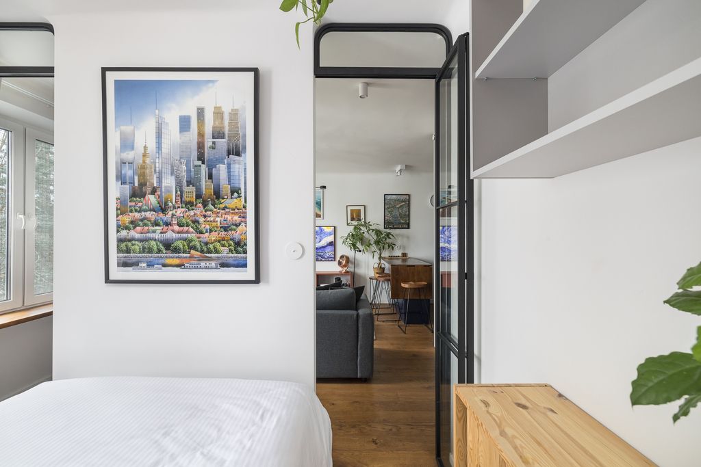Z salonu i sypialni rozpościera się widok na zieleń.