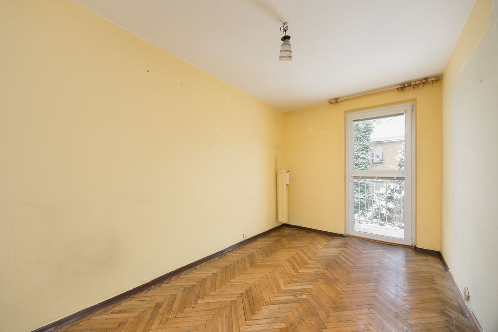 The apartment is situated on the 2nd floor of a 3-storey building from 1958. Excellent location – right next to Księcia Janusza Metro Station. Dual-aspect apartment with a balcony and a cellar. The property offers huge potential for individual arrangement and requires general renovation.