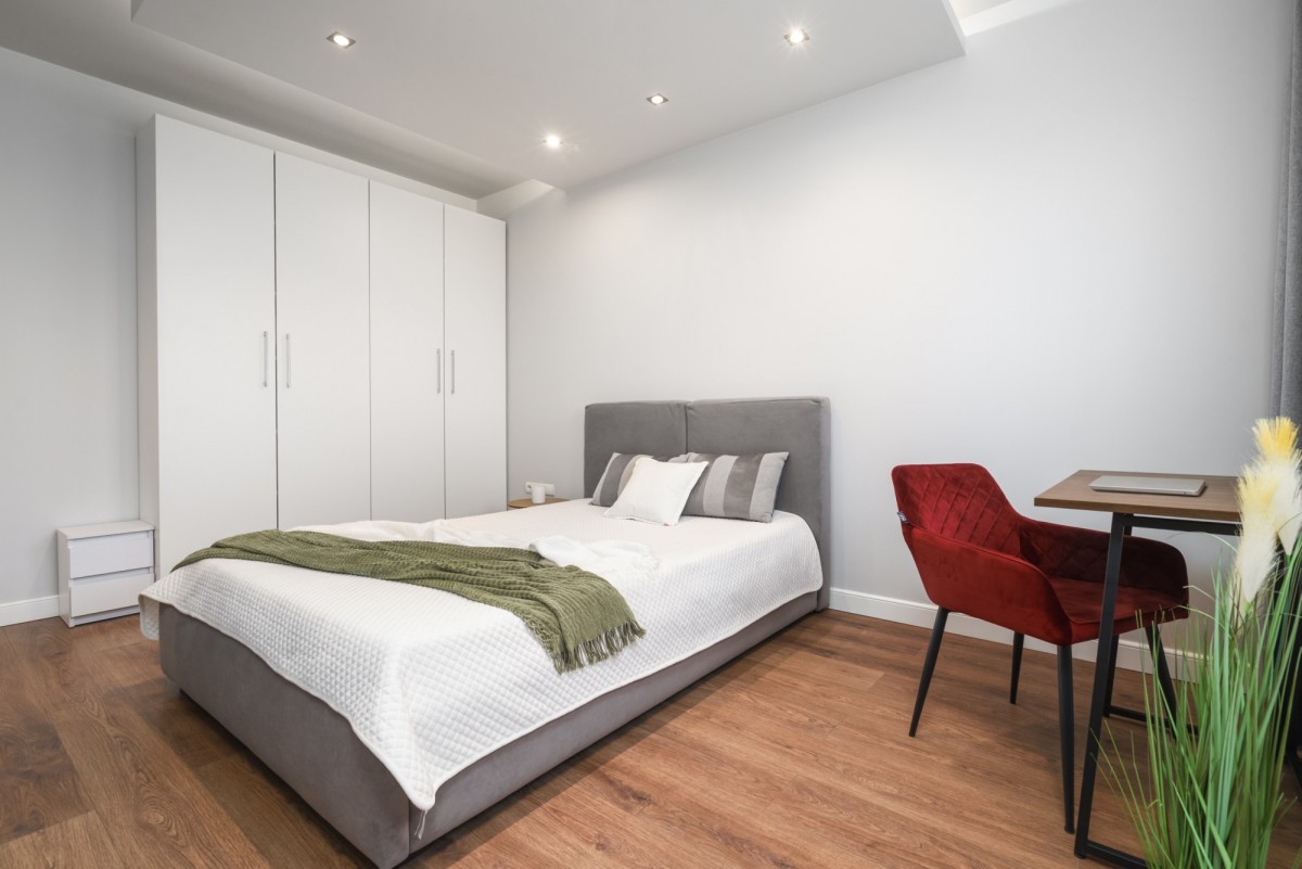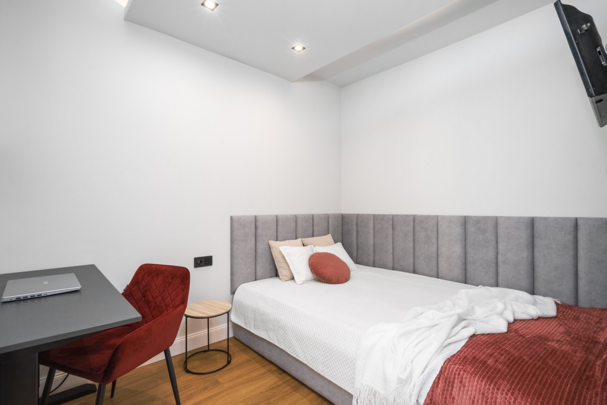 Każde z mieszkań posiada salon z aneksem kuchennym, sypialnię oraz łazienkę, co pozwala wynajmować je oddzielnie i osiągać wyższą rentowność niż w przypadku tradycyjnego najmu jednego lokalu.