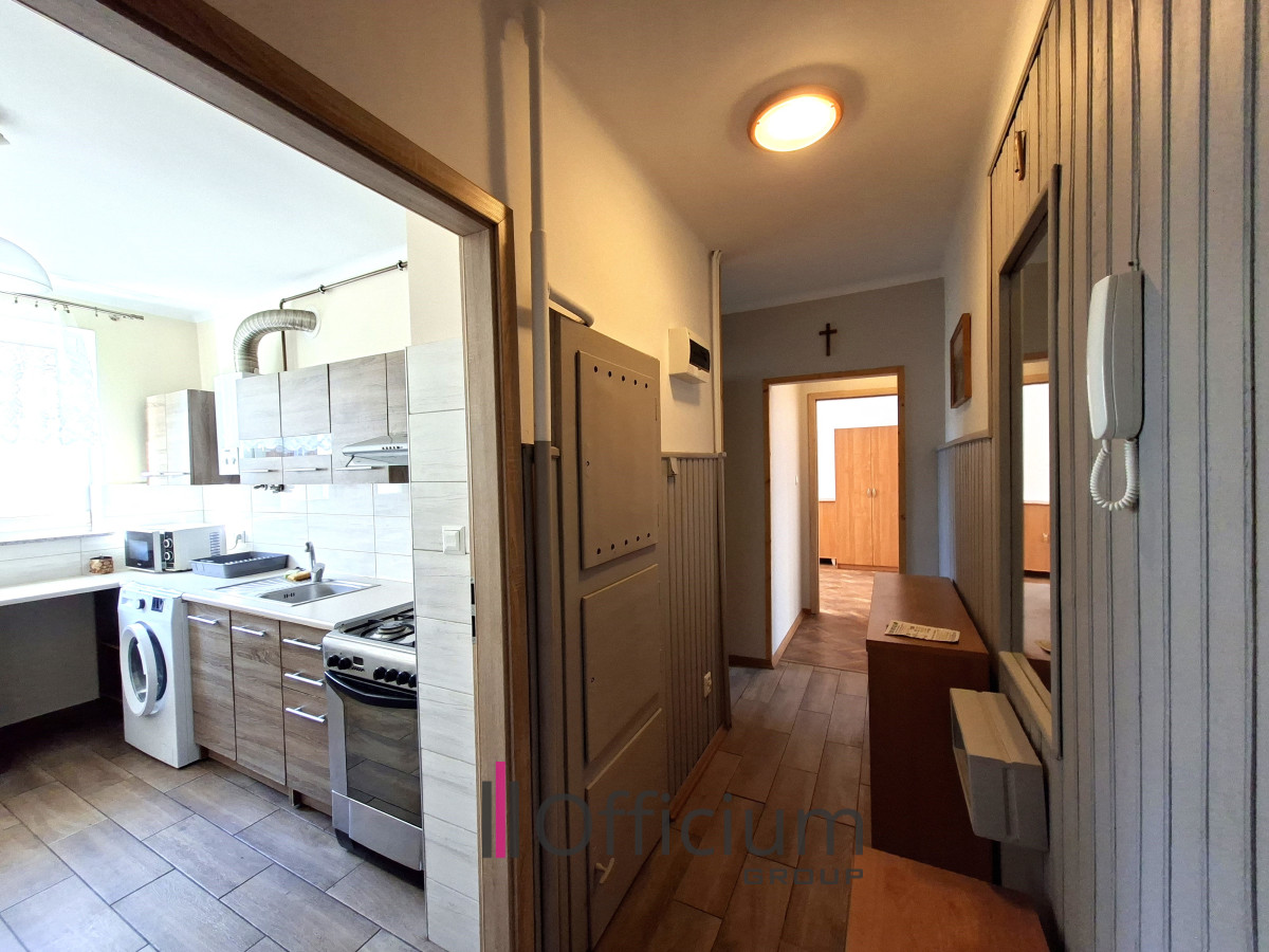 Mieszkanie jest funkcjonalne i wygodne do wspólnego zamieszkania. Wnętrze mieszkania charakteryzuje się funkcjonalnym układem. Składa się z dwóch zamykanych pokoi, oddzielnej kuchni, łazienki z toaletą oraz przedpokoju. Dzięki takiemu układowi każdy z lokatorów może liczyć na prywatność i komfort nauki. Dodatkowym atutem jest balkon o powierzchni około 7 m². Mieszkanie jest w pełni wyposażone w podstawowe sprzęty AGD: lodówkę, kuchenkę gazową z piekarnikiem oraz pralkę. Do mieszkania przynależy piwnica.