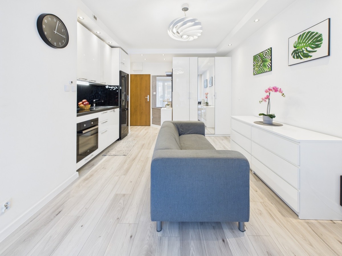Wnętrze mieszkania zachwyca neutralną, harmonijną tonacją kolorów, która tworzy przytulną i elegancką przestrzeń. Dzięki uniwersalnej palecie barw każda dekoracja i dodatek będzie wyglądał pięknie - można wprowadzić dowolny kolor, od delikatnych pasteli po wyraziste akcenty, i zawsze uzyskać spójną i stylową aranżację. To idealne rozwiązanie dla osób, które chcą dopasować mieszkanie do własnego gustu i osobowości.