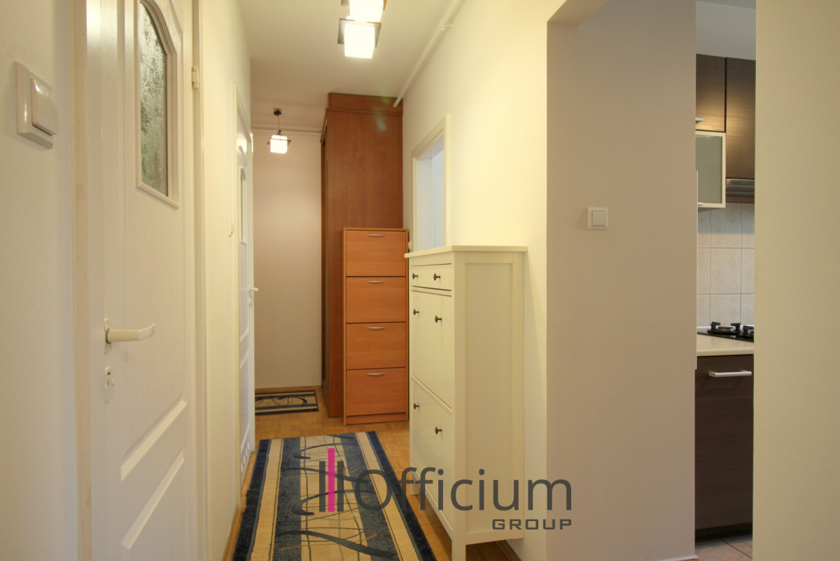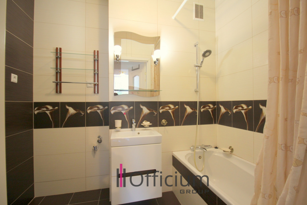 Przedmiotem najmu jest gustownie urządzony lokal o pow.51,7 m2, usytuowany na 1 piętrze budynku z 2000 r. Lokal składa się z: dużego przestronnego salonu jednej sypialni, osobnej kuchni z oknem, dużej łazienki wyposażonej w wannę, oddzielnej toalety, przestronnego hallu oraz dość obszernego balkonu. Całe mieszkanie zaprojektowane z myślą o funkcjonalności i przestronności. Zabudowa kuchenna wyposażona w niezbędny sprzęt AGD tj.: płyta gazowa, piekarnik wraz z mikrofalówką w zabudowie, zmywarka, lodówko-zamrażarka. Ponadto w kuchni mieści się niewielki stolik z krzesłami przy którym spokojnie można zjeść śniadanie lub napić się kawy. Natomiast w łazience znajduje się pralka. W mieszkaniu znajdziemy dwie bardzo duże szafy, jedną w salonie a drugą w sypialni. Poza tym z salonu wyjście na przestronną loggię.