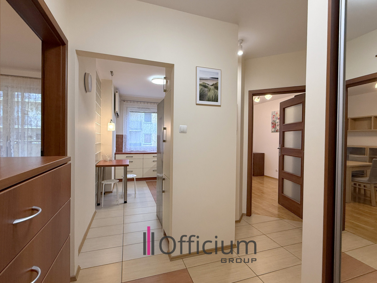 Przedstawiony lokal znajduje się na pierwszym piętrze 5-piętrowego budynku z windą. Składa się z: dwóch niezależnych pokoi, osobnej/widnej kuchni, łazienki, przedpokoju i dużej loggi. Lokal wykończony i wyposażony przy zastosowaniu materiałów dobrej jakości z myślą o funkcjonalności i estetyce. W łazience między innymi wygodna kabina prysznicowa i pralka oraz dużo szafek do przechowywania. W kuchni znajdziemy niezbędny sprzęt AGD w tym zmywarkę.