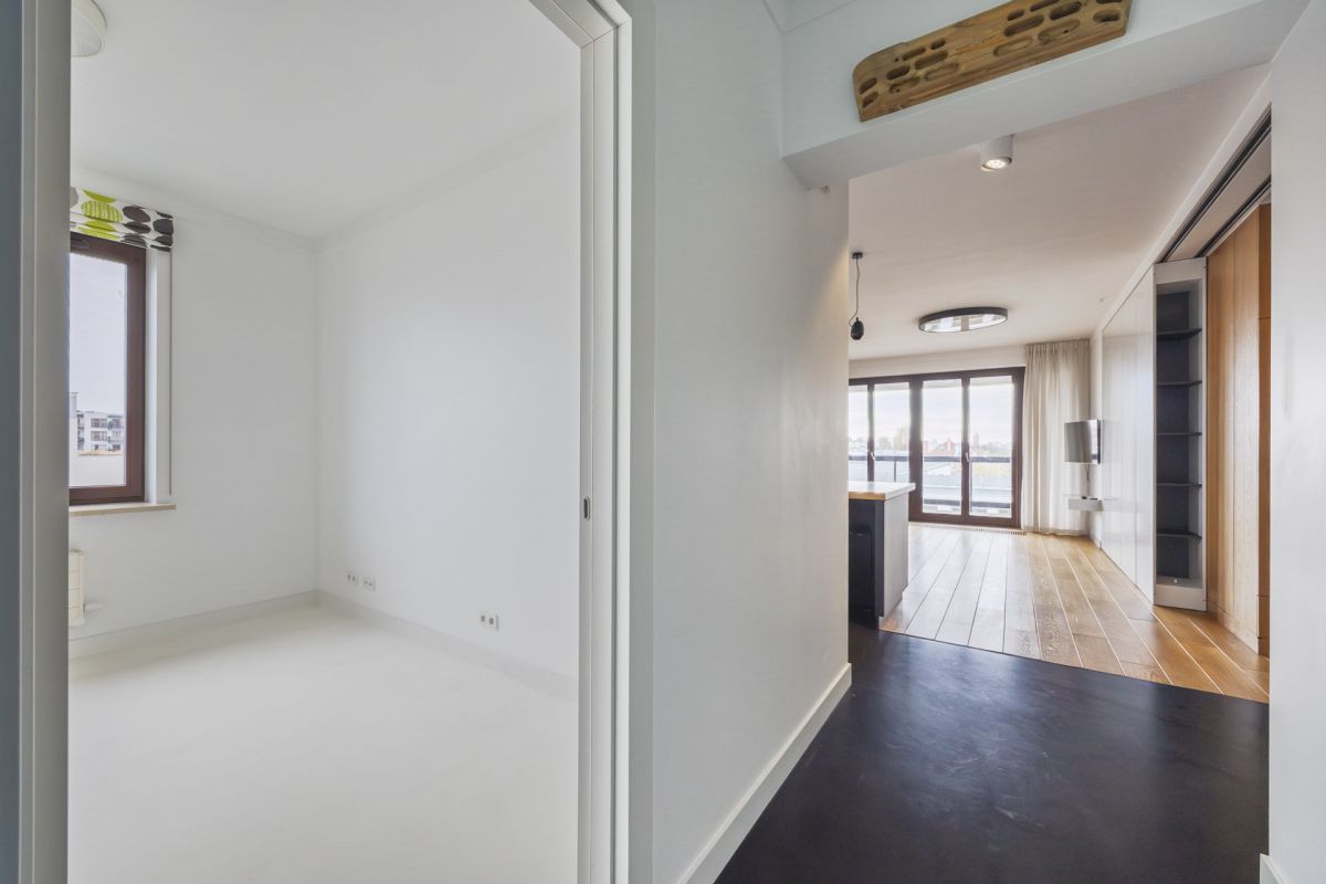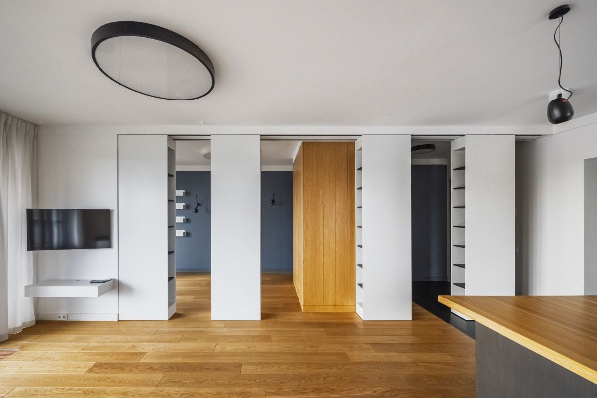 Apartament charakteryzuje się niezwykle funkcjonalnym układem, dzielącym przestrzeń na strefę dzienną i prywatną: