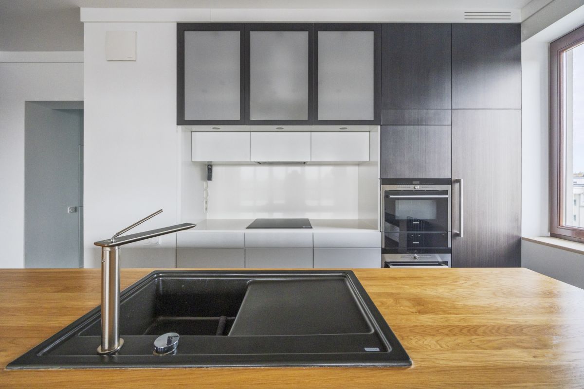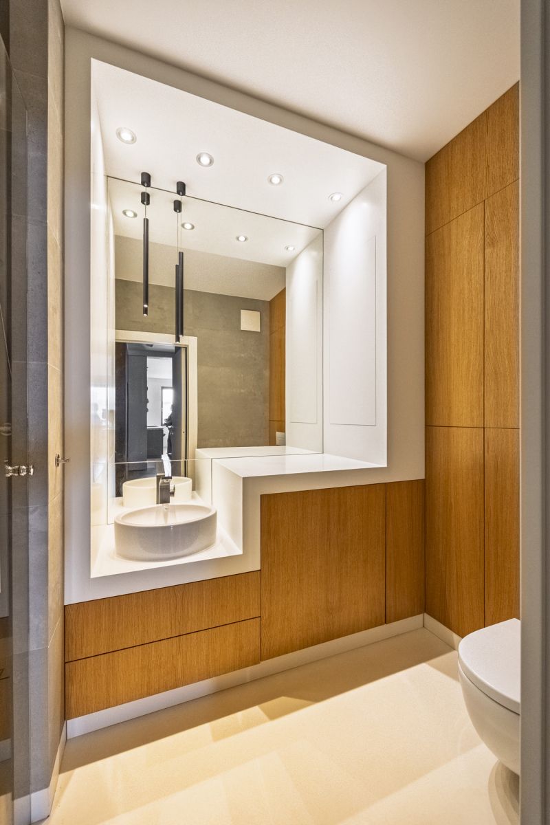 Wnętrze zostało zaprojektowane z dbałością o najmniejszy detal, co widać w doborze materiałów i przemyślanych systemach przechowywania: