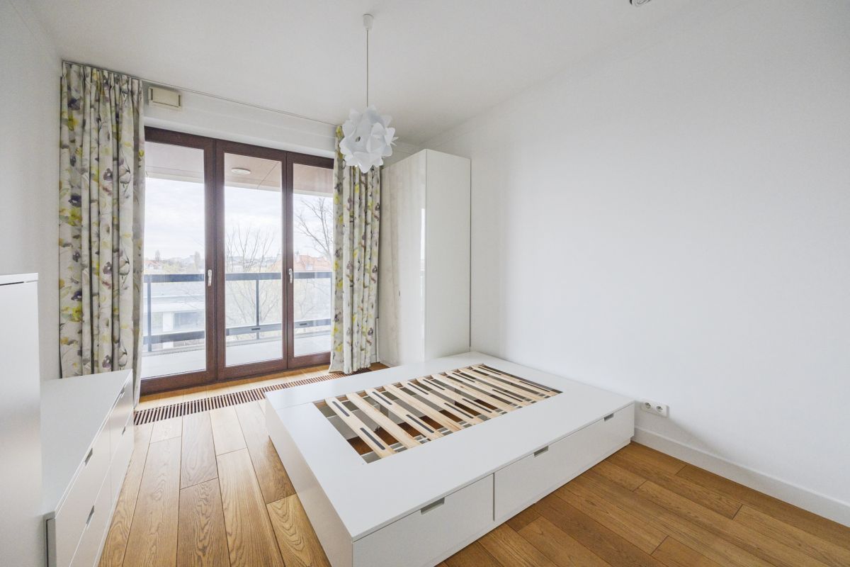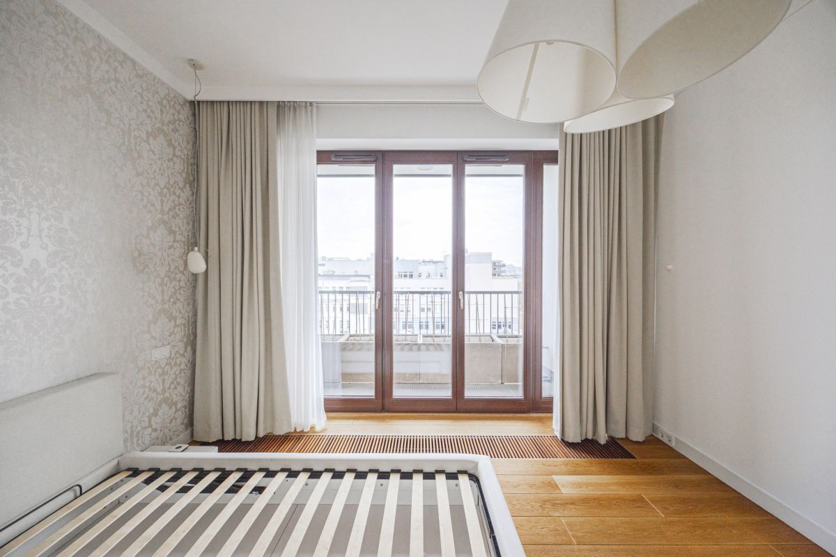 * Dwa balkony: mniejszy przylegający do sypialni oraz duży, dostępny z salonu i pozostałych pokoi.