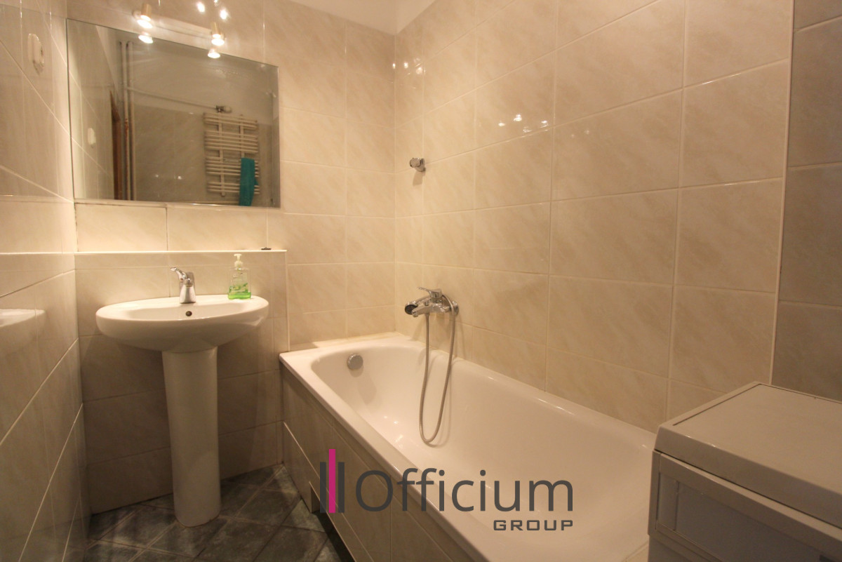 For rent a spacious, two-room (two separate rooms) flat after major renovation - Warsaw / Praga Płd / ul. Komorska. The subject of the lease is a 2-room apartment with an area 54 m2, located on the 1st floor of a building from 2001. Neat staircases, two elevators. The restaurant consists of: two separate rooms (20m2 and 14m2), separate kitchen with window, bathroom and hallway. The kitchen is equipped with: kitchen furniture, induction hob, oven, fridge-freezer, mini table. Bathroom (completely renovated) equipped with a bathtub with a shower window, new washing machine. A very spacious 3-door commander-type wardrobe in the hall. An undoubted advantage is the very large loggia of the area. about 15m2, covers the entire width of the apartment, exit from a larger room. FLAT WITHOUT FURNITURE IN ROOMS, TO BE ARRANGED BY THE RENTALS. STANDARD AS ON PICTURES. Additional information: - administrative rent is paid by the Owner, - the Lessee bears the costs of utility consumption according to meters (electricity, water and abnormal CO consumption), - 1-month deposit, - lease agreement for a minimum of 12 months, occasional rental, - free immediately. Neighborhood: The building is away from Zamieniecka Street, the windows overlook green areas and surrounding trees, west exposure. Parking possibility in front of the building. A good transport connection is provided by numerous bus lines (Zamieniecka stop at Ostrobramska street). Journey to the center and the Politechnika subway around 15-25 min. The offer is ideal for a couple, two people or a family. Offer remarkable. I invite you to the presentation.