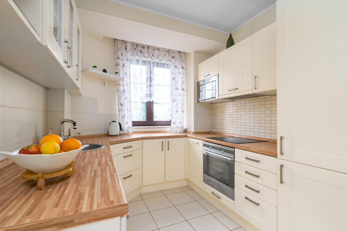 * Oddzielna kuchnia z oknem o powierzchni 10,2 m² w pełni wyposażona w zabudowie kuchennej znajduje się lodówka z zamrażarką, piekarnik, płyta indukcyjna