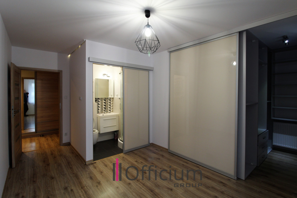 Jedna z łazienek (6 m²) wyposażona jest w wannę, toaletę i umywalkę. Dwa pokoje mają powierzchnię ok. 11 m² każdy. W sypialni (16 m²) znajduje się garderoba (5 m²) oraz prywatna łazienka z prysznicem i WC (4,5 m²).