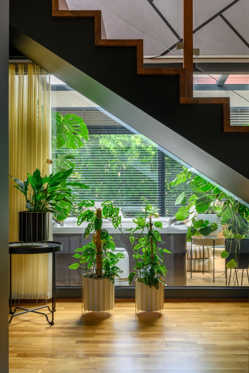 - Główna sypialnia z garderobą i przeszkloną antresolą
