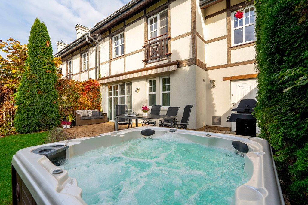 - Wyposażenie domu: wysokiej jakości materiały wykończeniowe, jaccuzi, fotowoltaika, ładowarka do aut elektrycznych, filtr do wody.