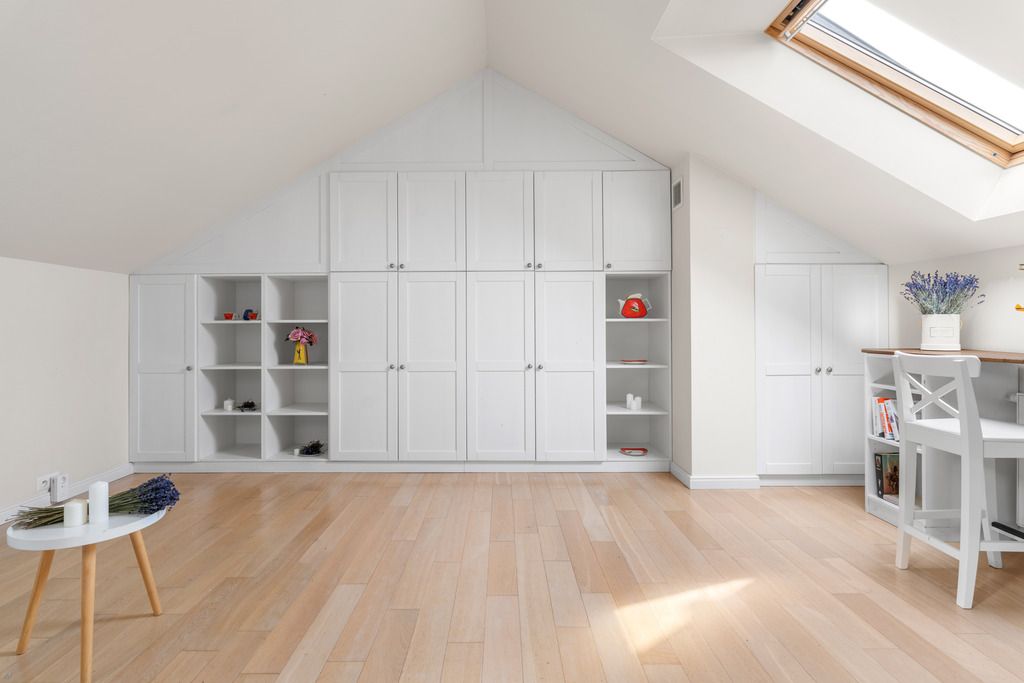 Dom jest bardzo funkcjonalny. Na parterze znajduje się strefa dzienna z kominkiem, toaleta oraz garaż i kotłownia, na piętrze 4 sypialnie, 2 łazienki i garderoba, a na poddaszu dodatkowy pokój i powierzchnia do przechowywania.