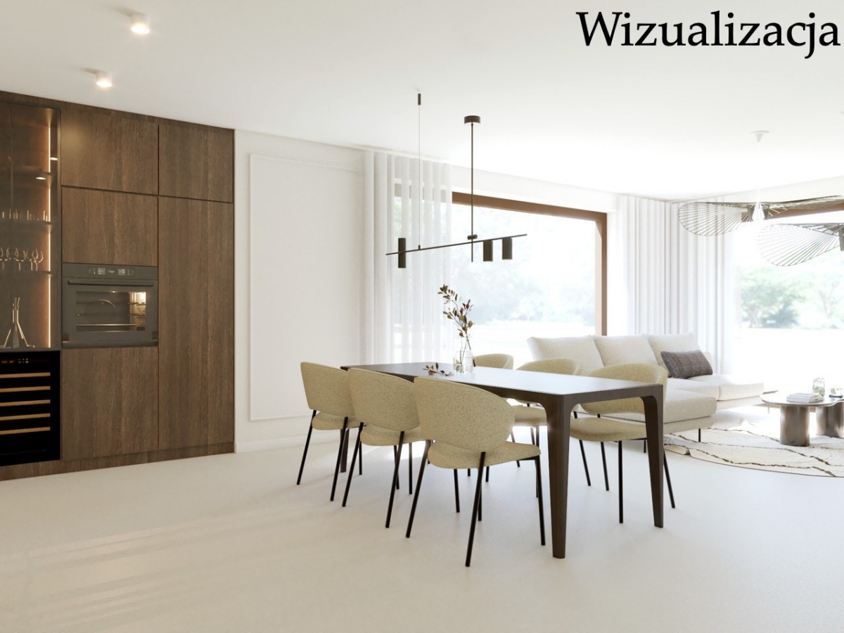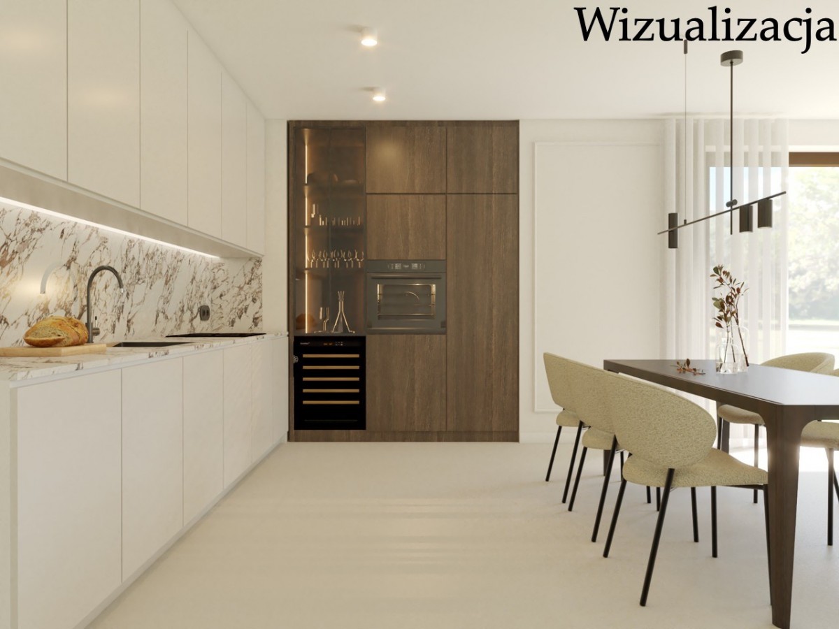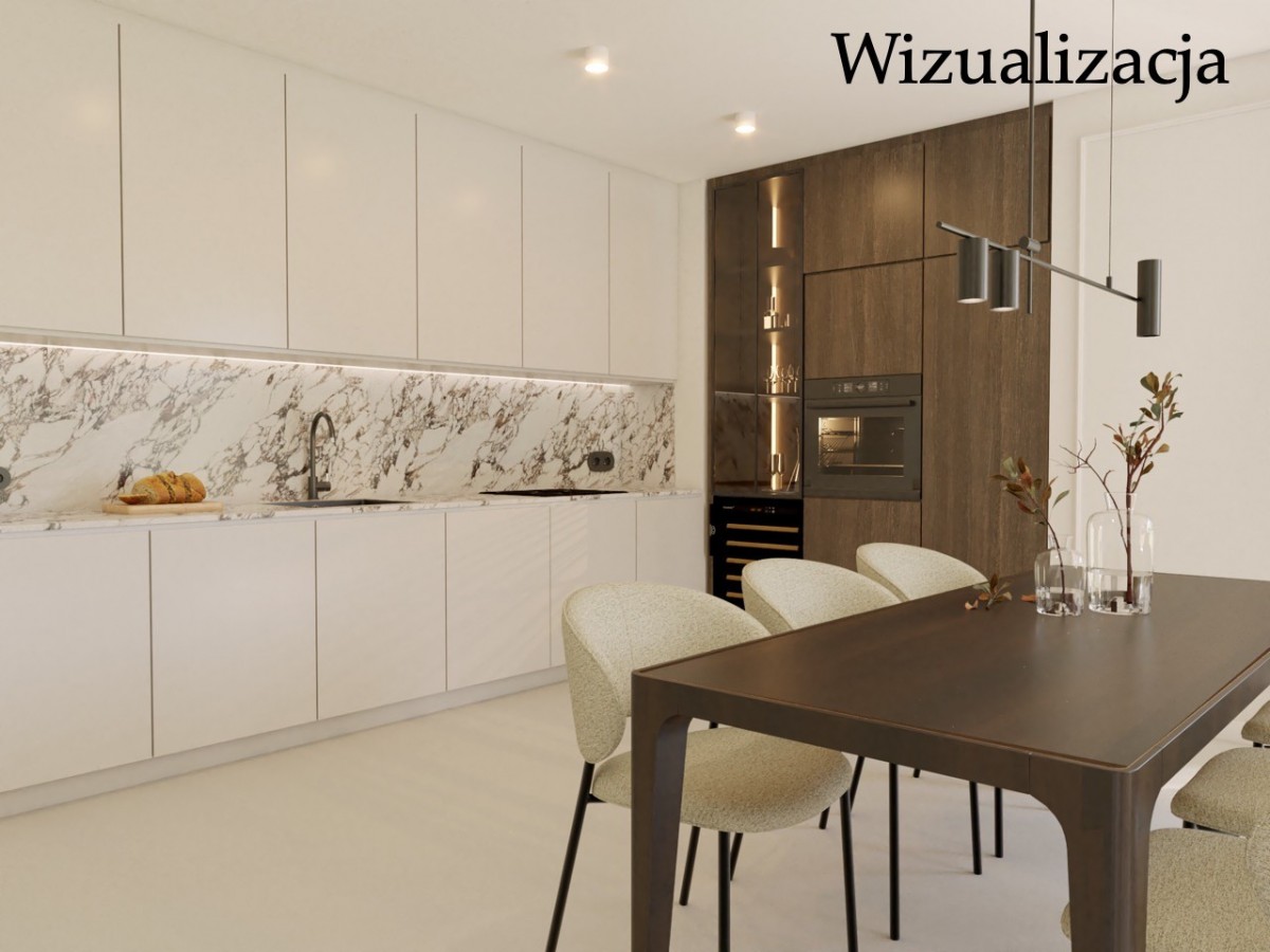 - 4 pokoje (w tym 2 sypialnie z garderobami + gabinet/sypialnia) oraz kuchnia z jadalnią