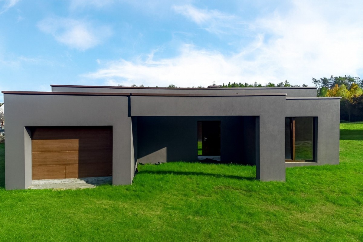 Parterowy, z płaskim dachem i grafitową elewacją - budowany przez właścicieli dla siebie z troską o każdy detal.