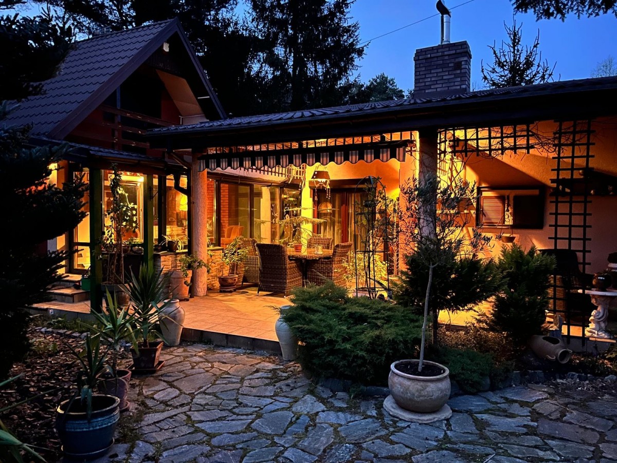 Do sprzedaży elegancki i komfortowy dom z pięknym ogrodem bezpośrednio przy ścianie lasu.
