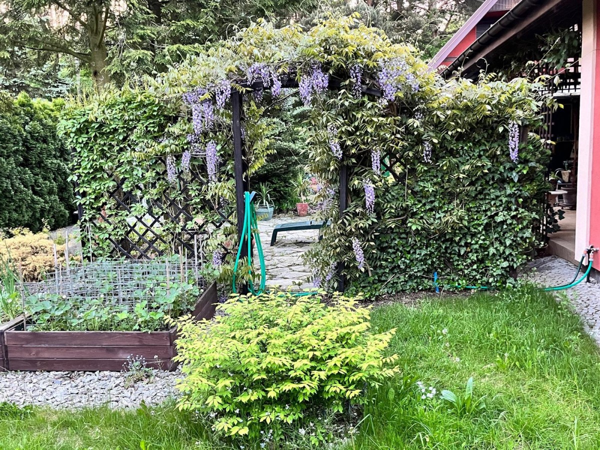 Wyjątkowa nieruchomość z klimatem, idealna dla tych, którzy cenią otoczenie przyrody, spokój oraz śpiew ptaków. Dom otoczony jest pięknym, zagospodarowanym ogrodem z mnóstwem nasadzeń oraz wysokimi drzewami na granicy działki.
