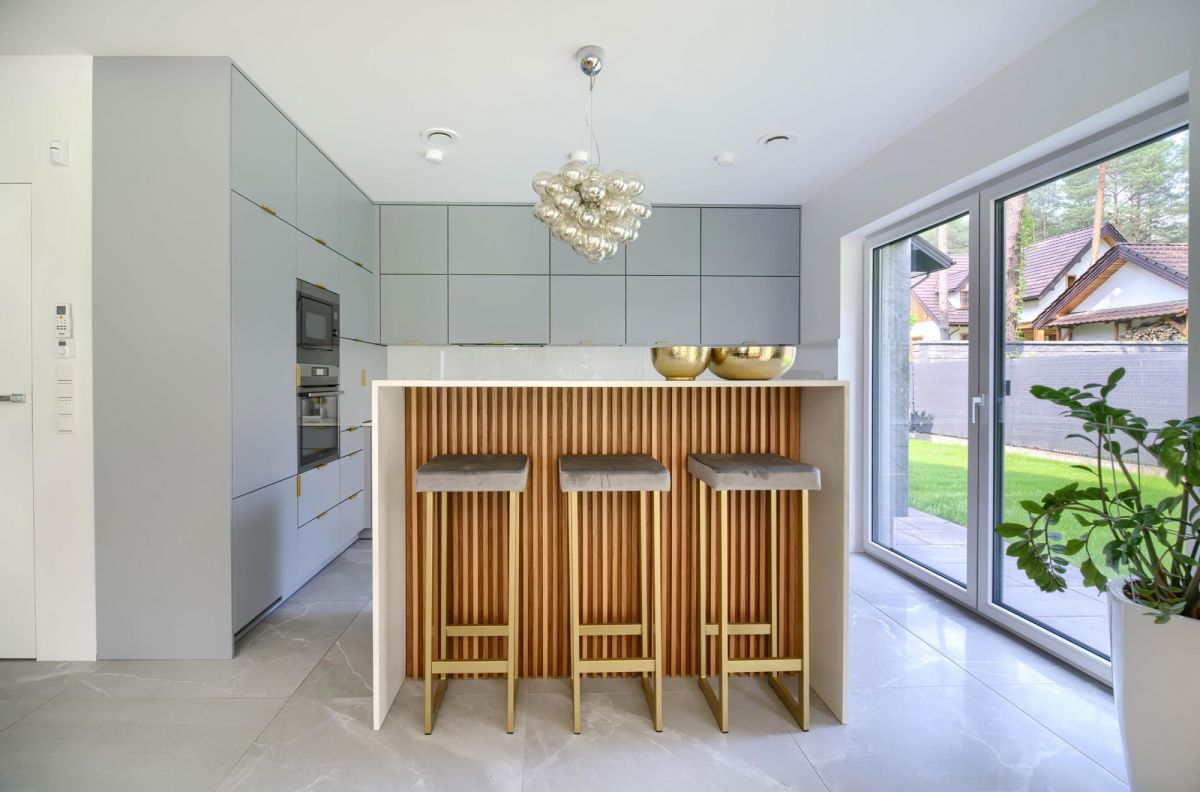 • Salon z jadalnią i kuchnią w otwartej przestrzeni