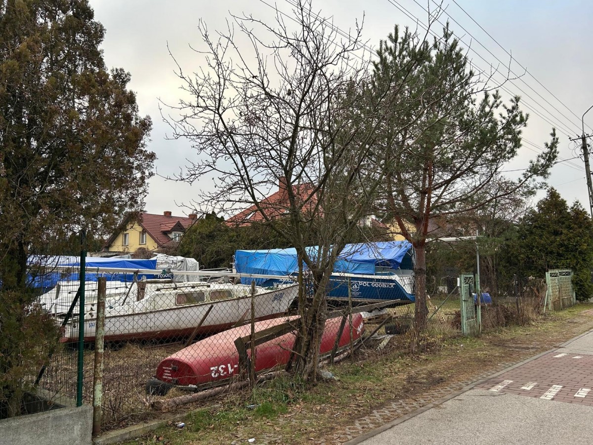 Działka niezabudowana, aktualnie wykorzystywana na sezonowe składowanie jachtów.