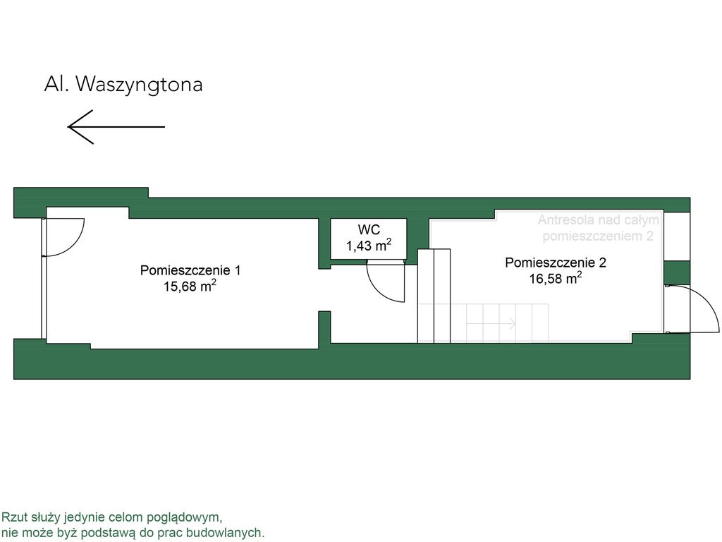 Lokal główny na poziomie ulicy (35,7 mkw. antresola ok. 10 mkw.):