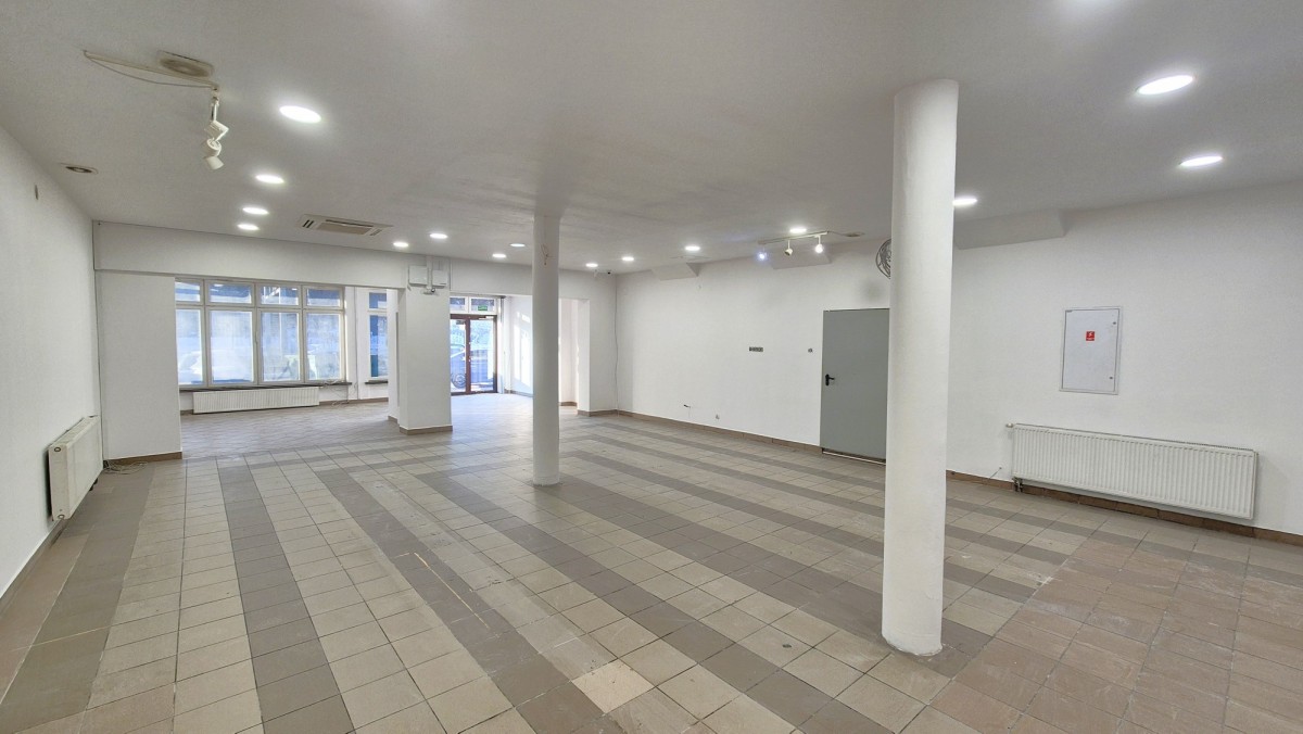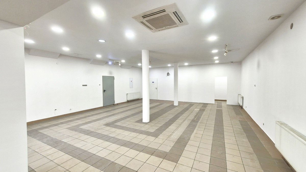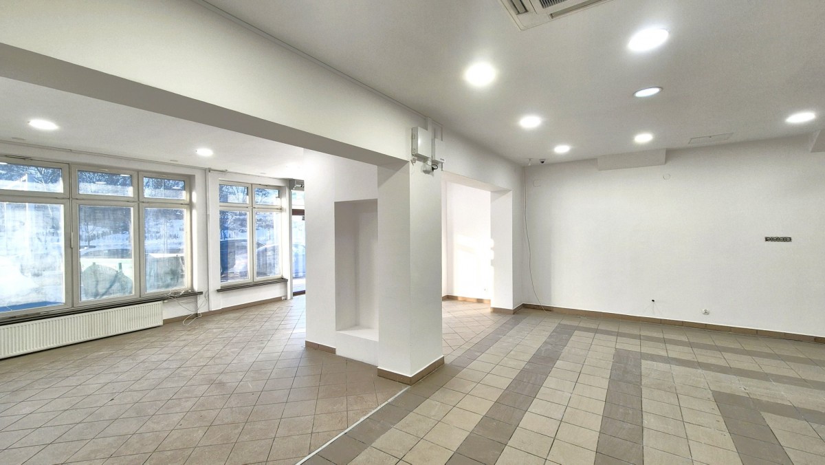Otwarta przestrzeń ok. 17 × 8 m, dwa wejścia (w tym jedno bezpośrednio z ulicy), duża witryna oraz możliwość montażu szyldu na elewacji. Lokal wykończony (gres), łazienki w częściach wspólnych. Jest możliwość doprowadzenia wod-kan do lokalu.