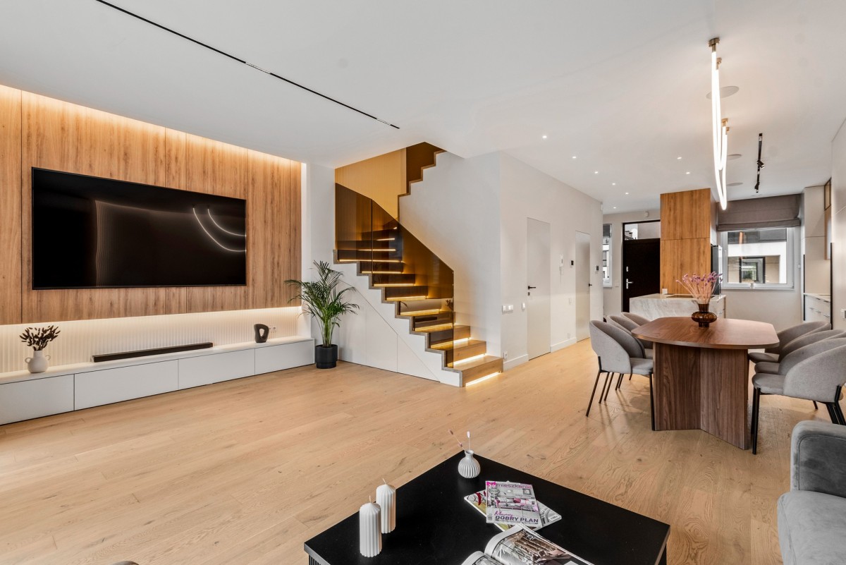 Nowoczesny bliźniak z jacuzzi, kinem domowym i ogrodem.