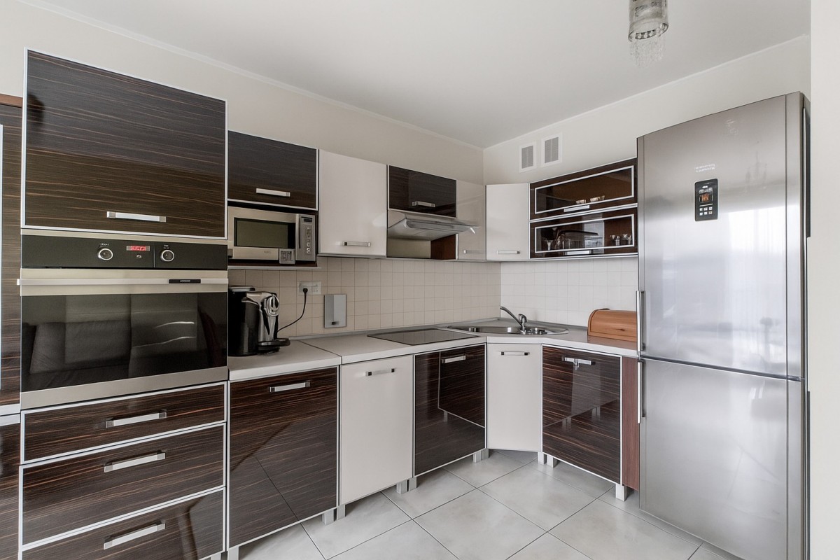 The apartment is double-sided, which guarantees optimal sunlight throughout the day. The view from the living room extends to the greenery rather than the neighbors, which provides privacy and silence. Such a location is a great asset, distinguishing this building from the rest, offering residents contact with nature and peace in an urban environment. In addition, thanks to this location, the apartment is an ideal place to rest after an intense day, giving a feeling of relaxation and comfort.