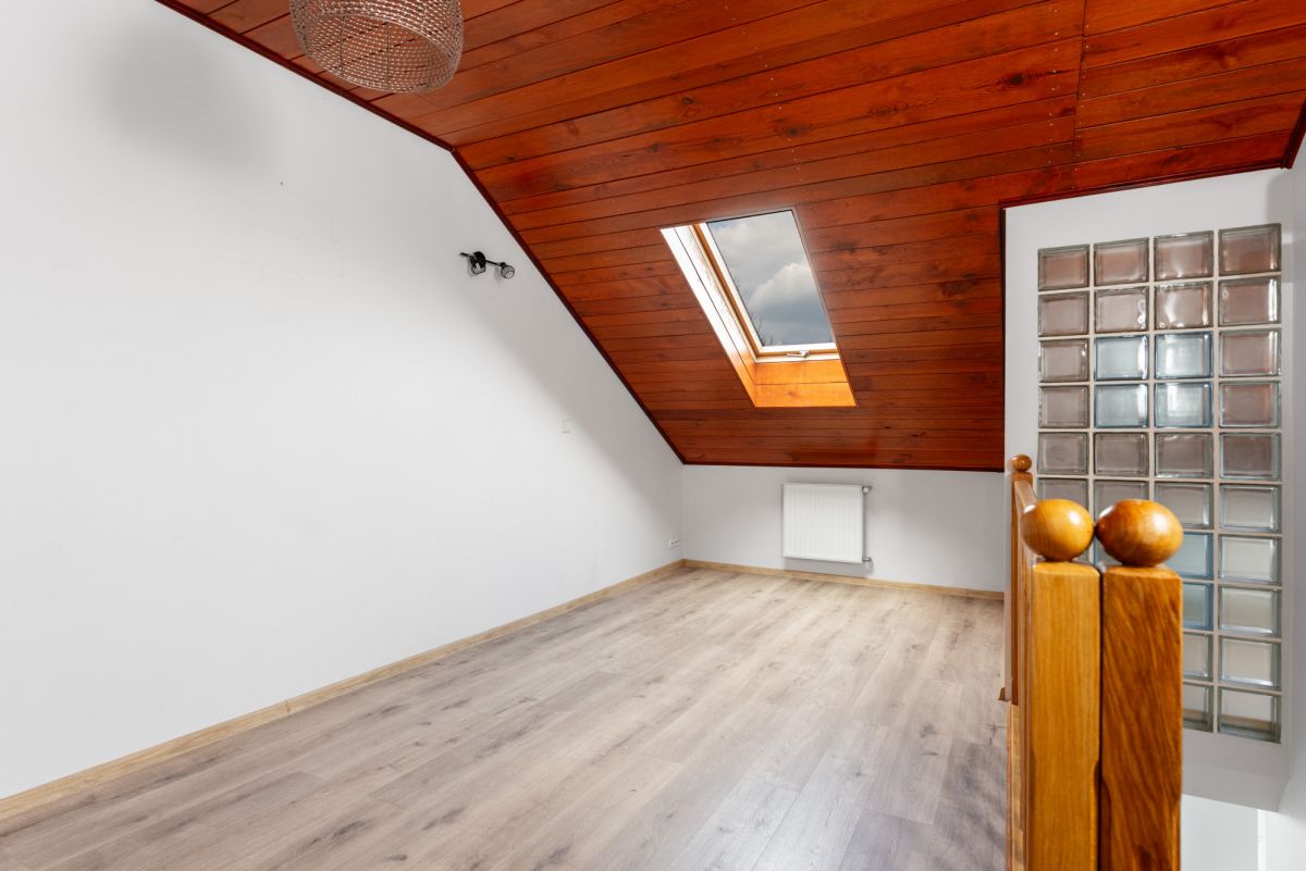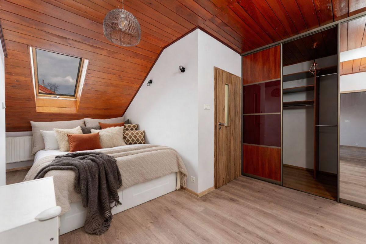Mieszkanie posiada również dodatkową przestrzeń w postaci strychu stanowiącego doskonałe miejsce do przechowywania.
